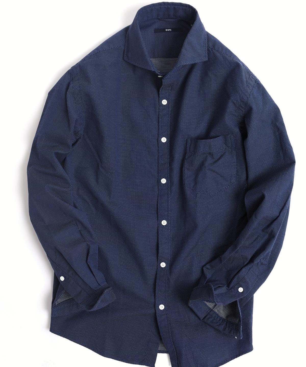 SHIPS: ドビー織り ドット セミワイドカラー シャツ