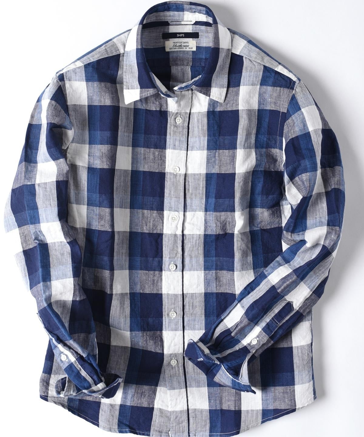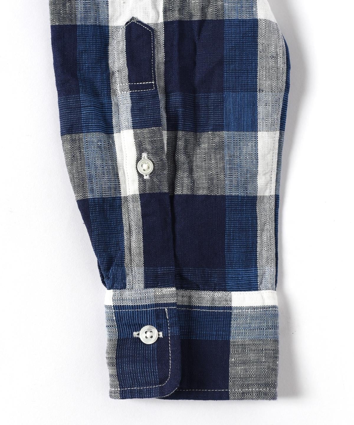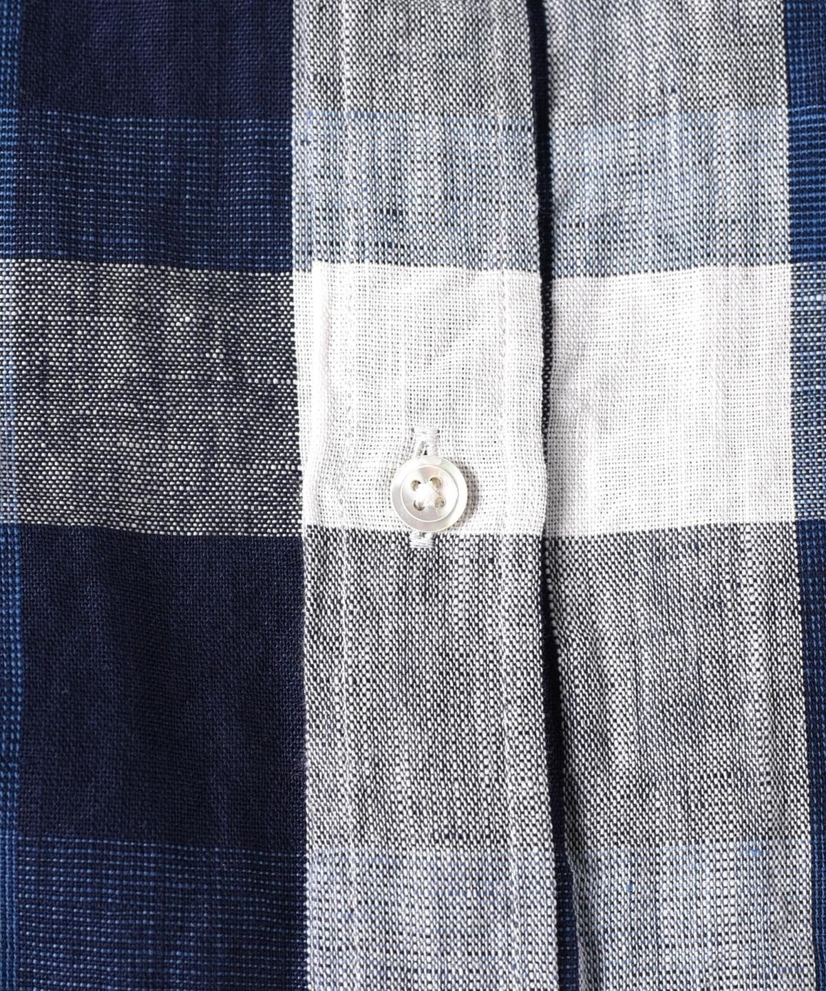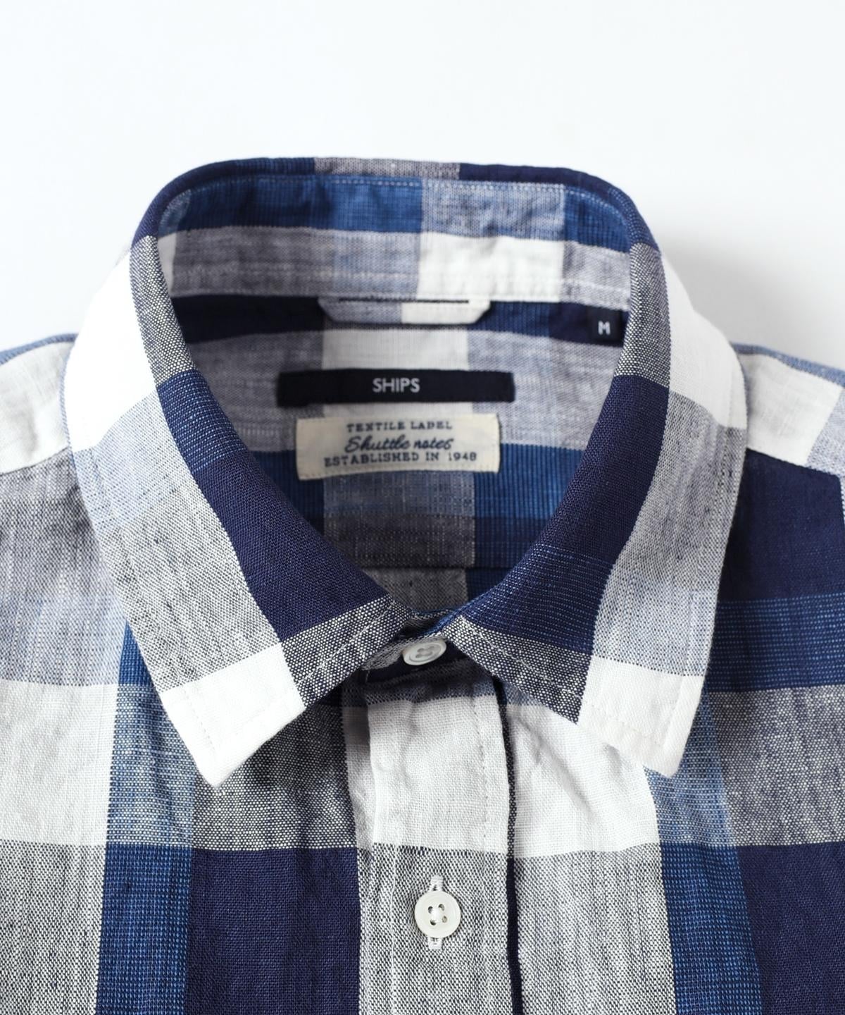 SHIPS: "Shuttle notes" コットン/リネン ナローカラー シャツ