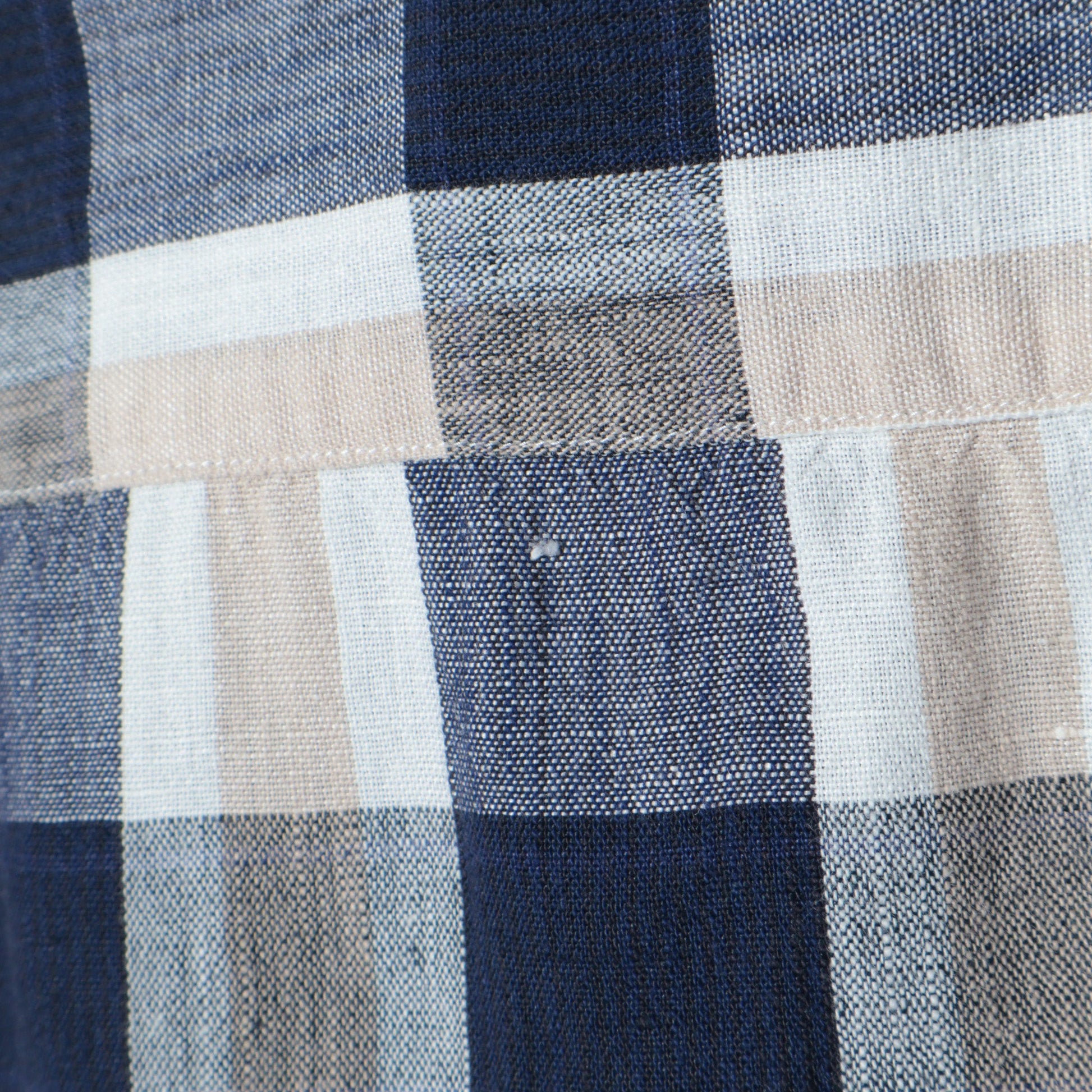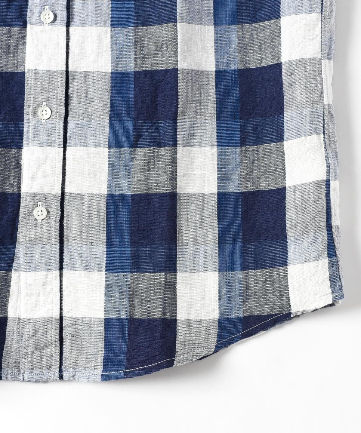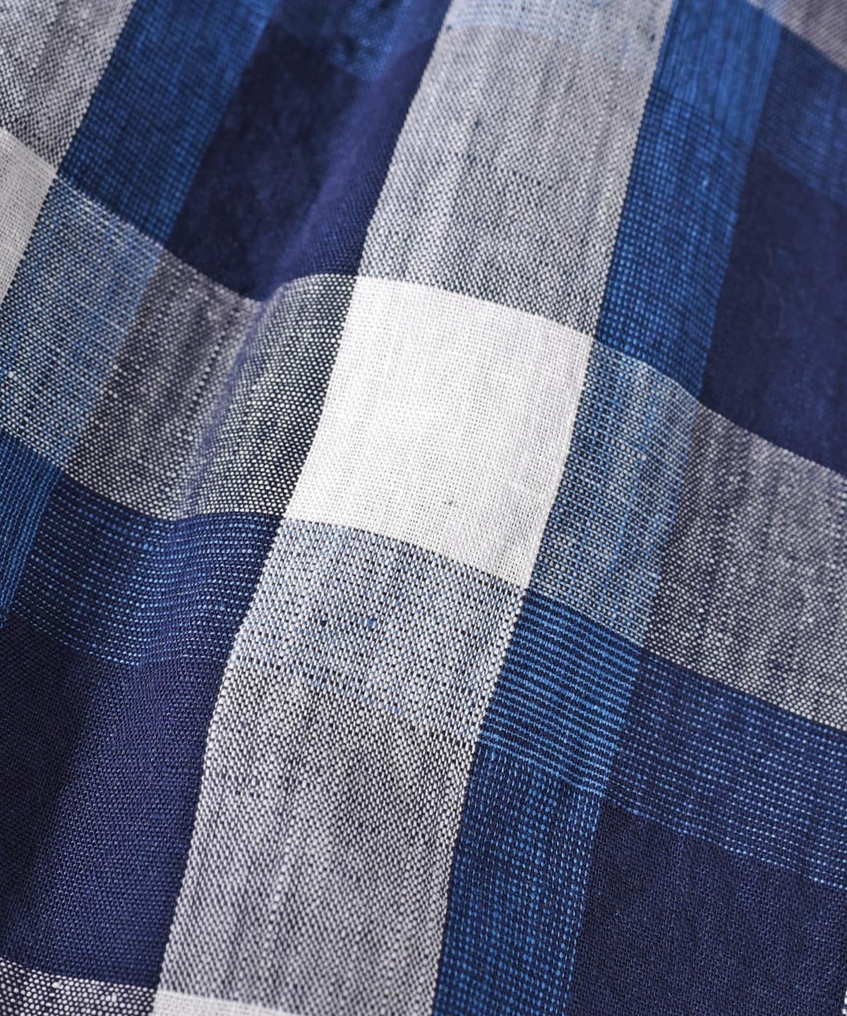 今回使用している生地は、色、風合いに拘った綿麻先染めのSHIPS別注素材。シャトルノーツが得意としているシャトル機で丁寧にゆっくり織った膨らみのある素材になります。