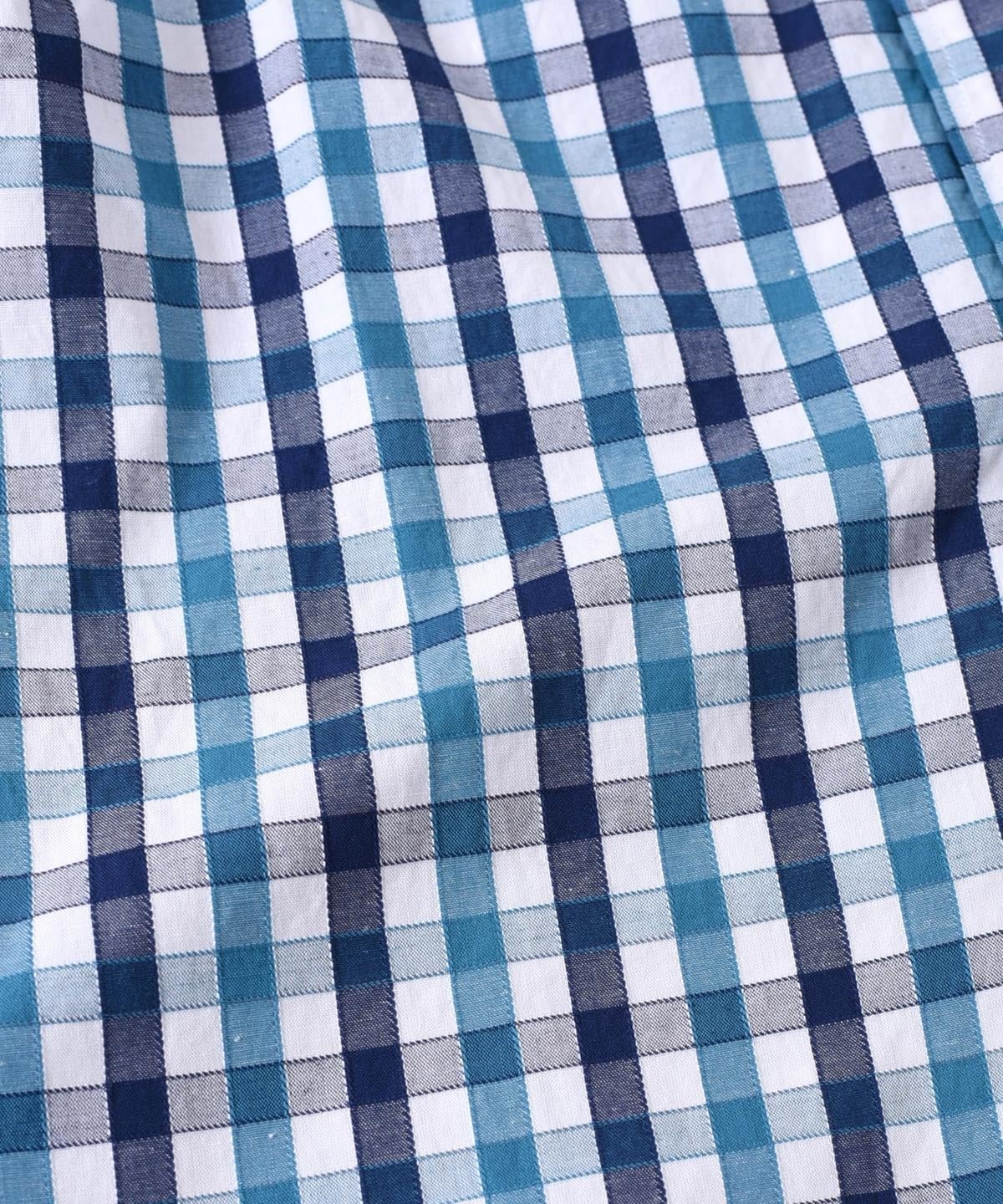 生地は先染めのギンガムチェック柄にドビー織りを加えた、独特の風合いが特徴となっております。