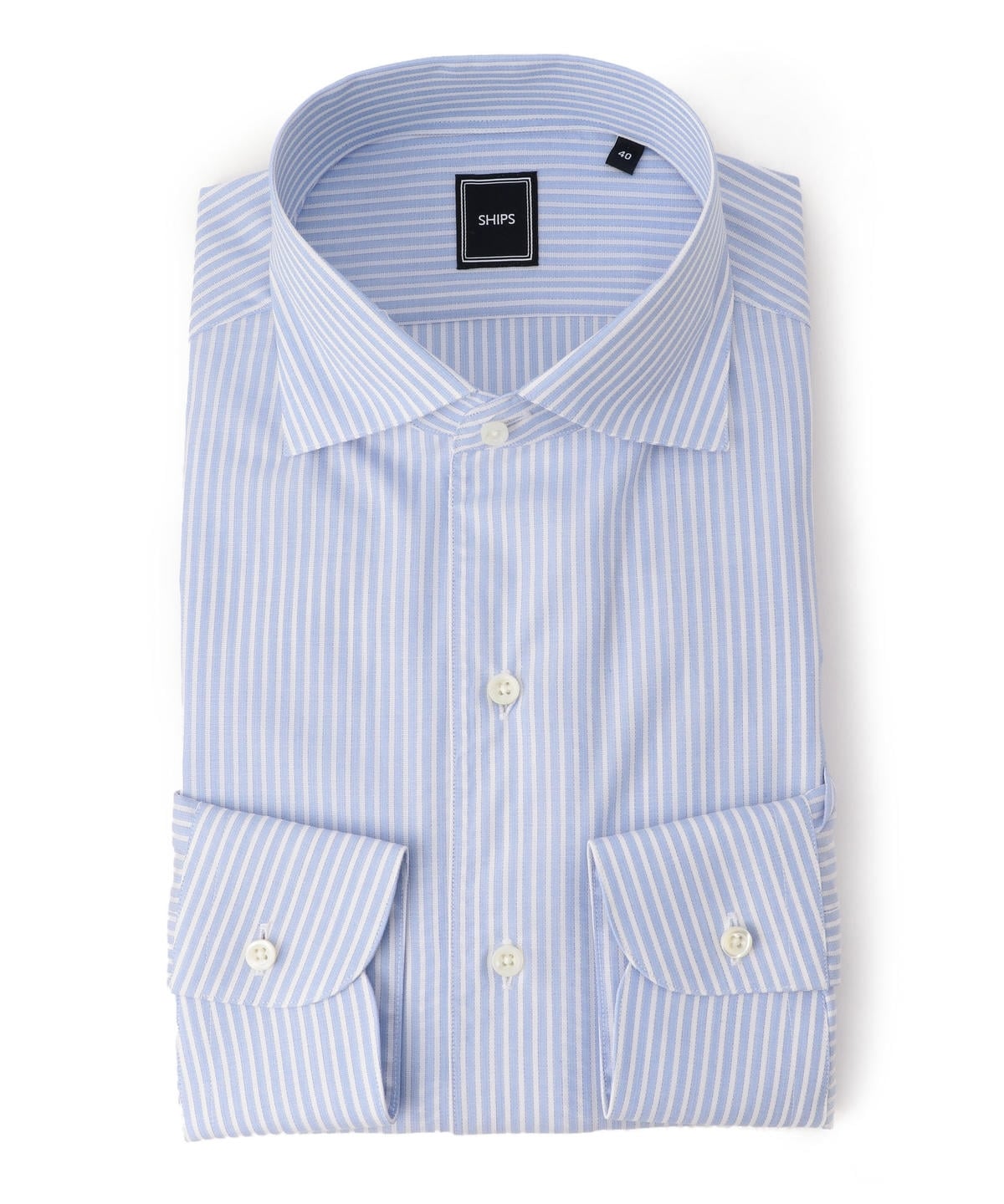 SD: ロングストライプ ワンピースカラー シャツ(ライトブルー)