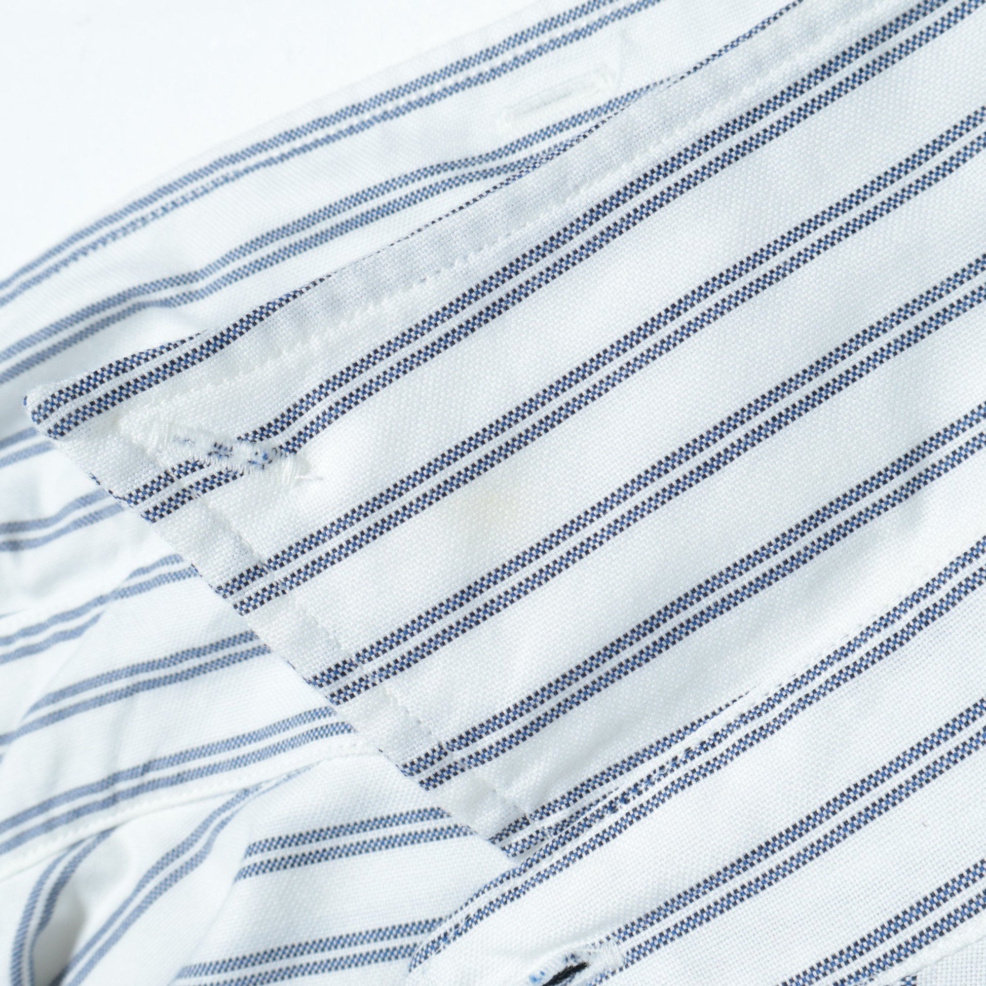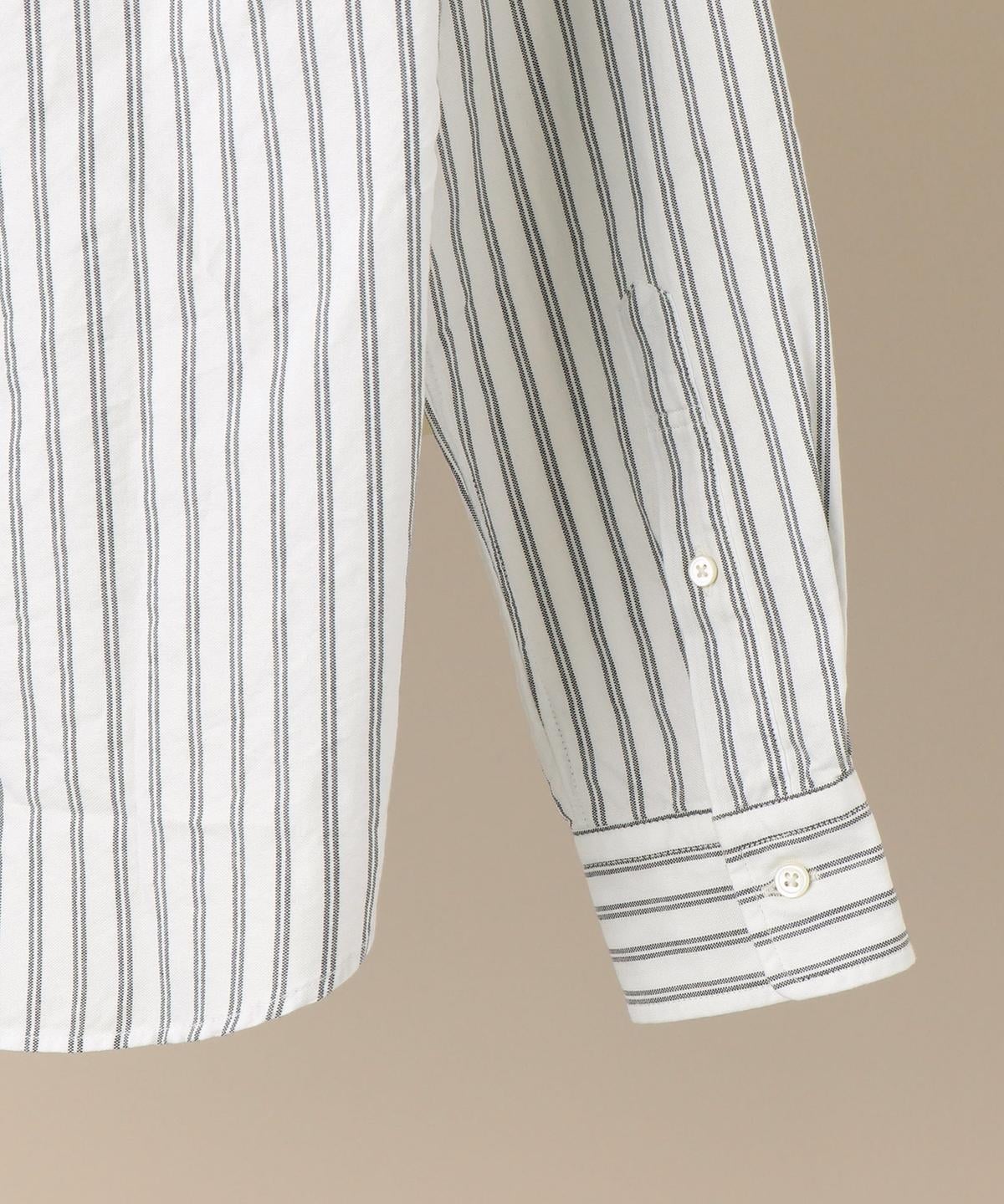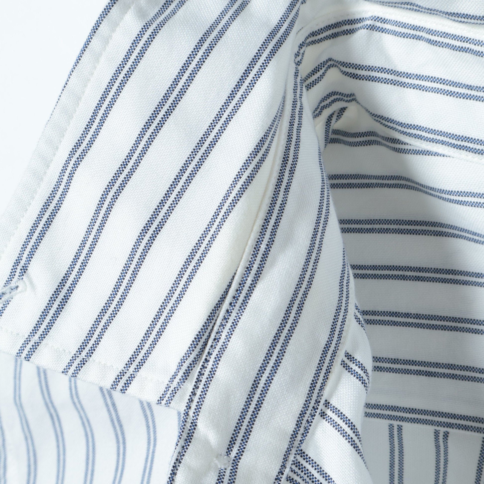 今回、その希少なペルヴィアンピマコットンを、別注のストライプ柄のオックスフォード地にて表現。高級感のある風合いに仕上がっているのが特徴です。