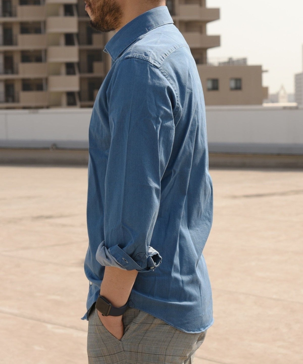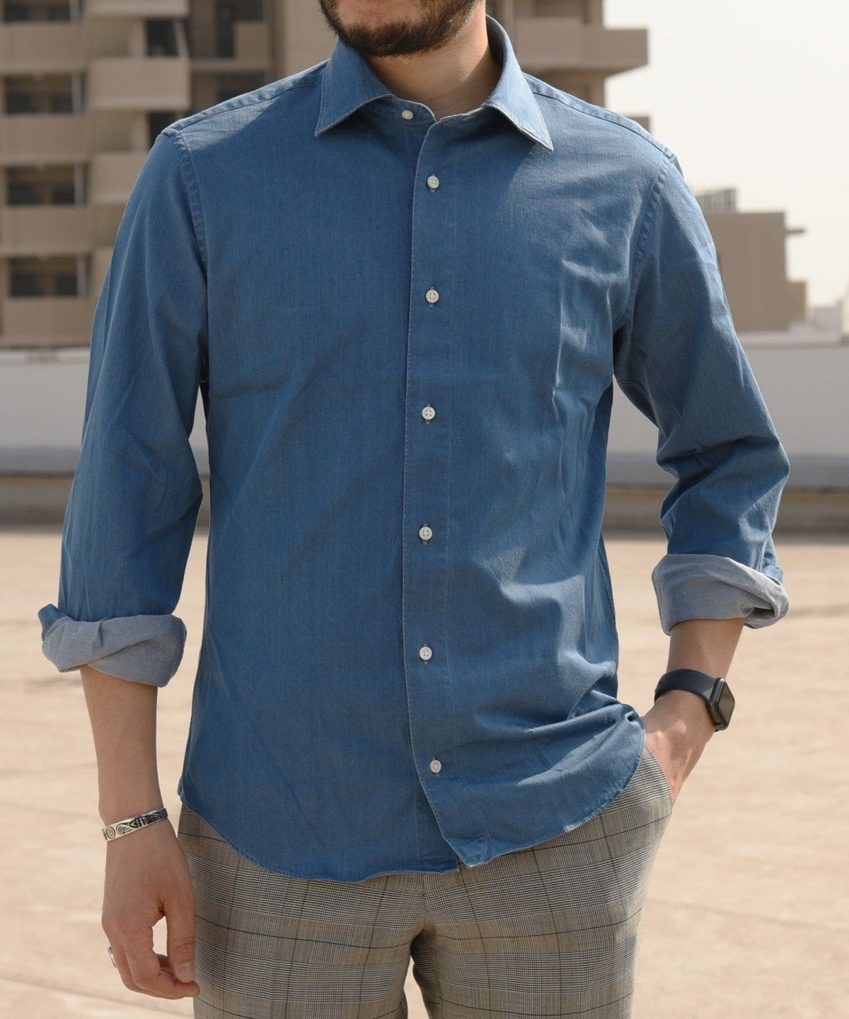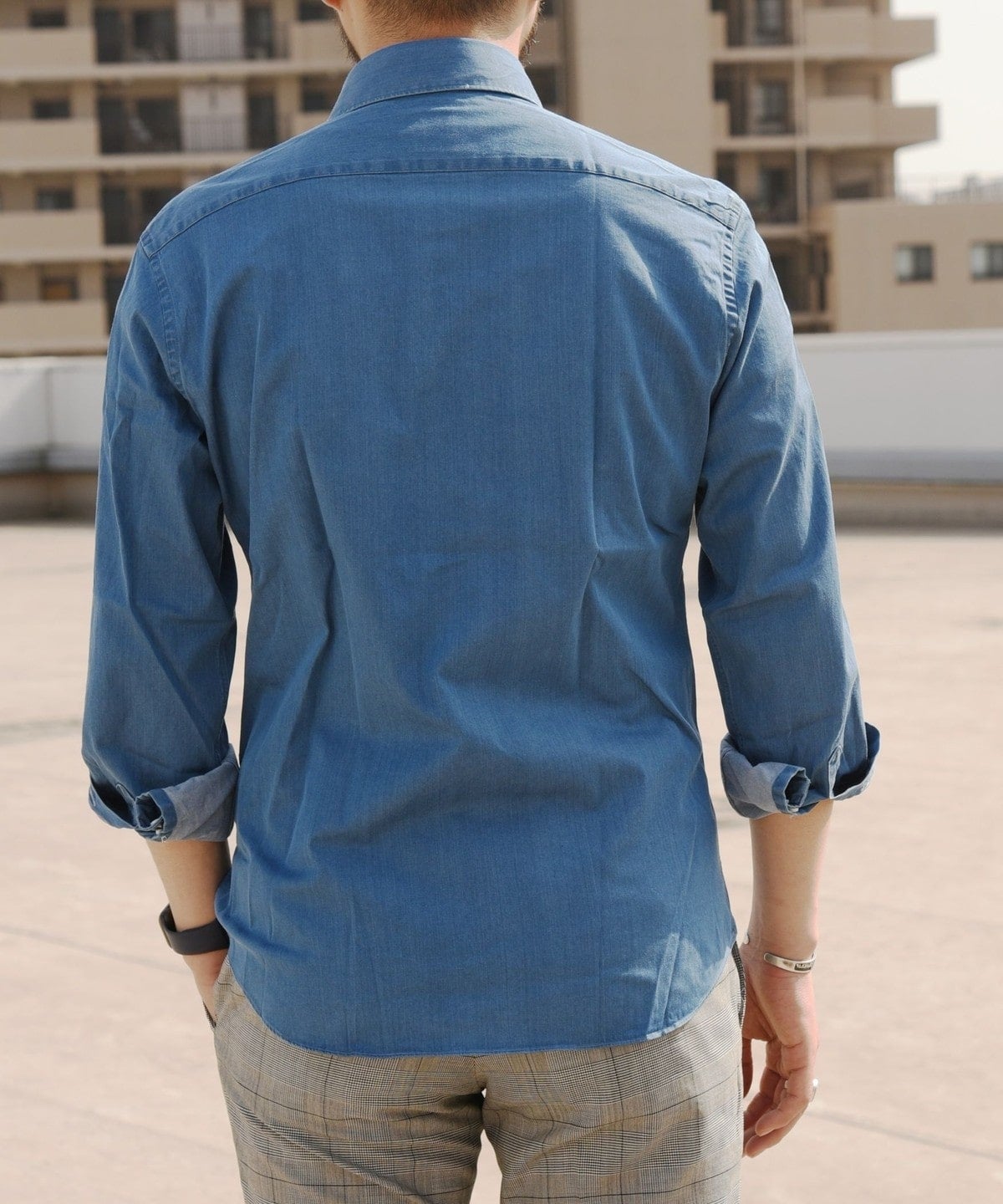 カジュアルにもドレスにもなり過ぎない絶妙なバランス、ディテールのデニムシャツです。