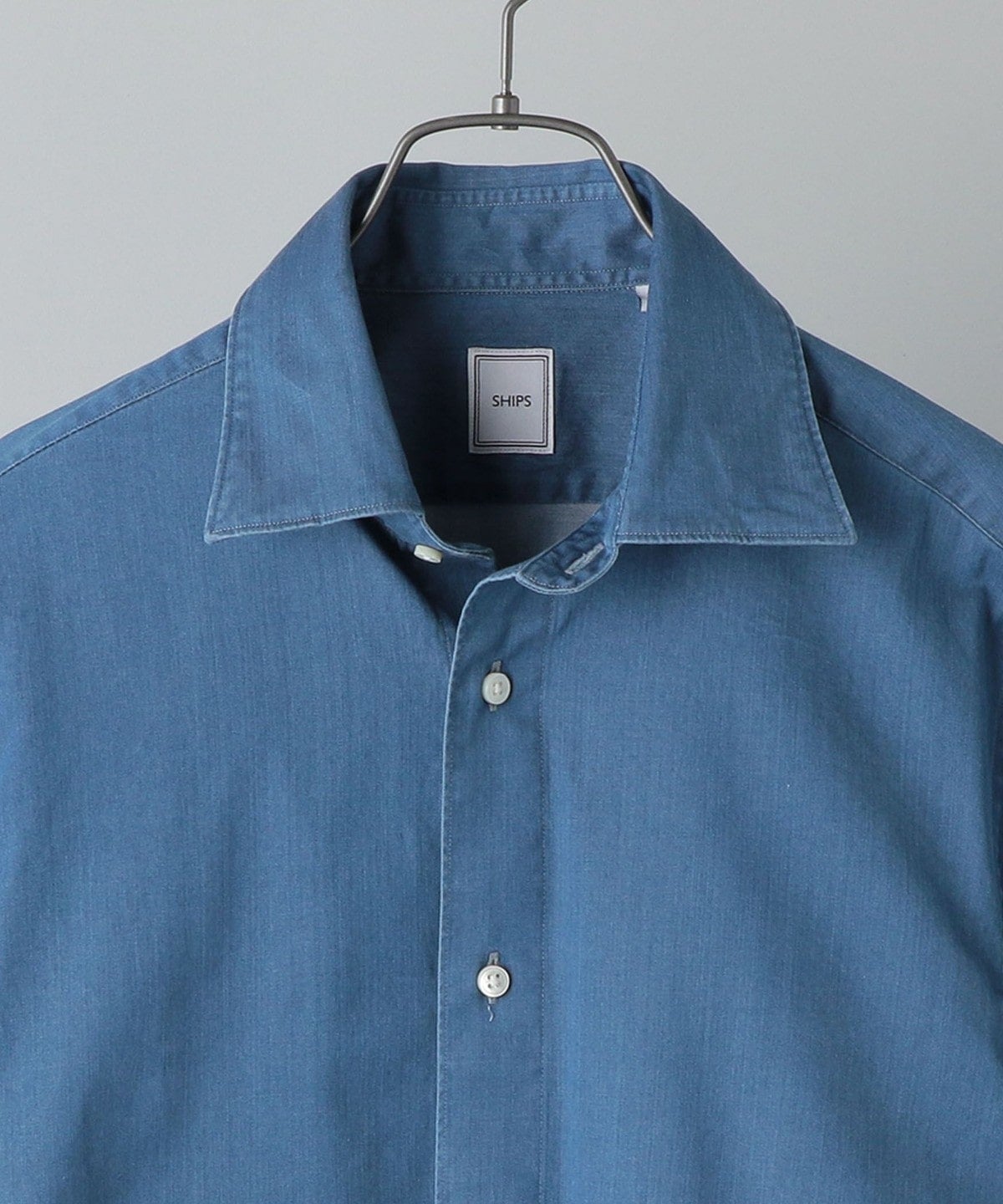 SHIPS:JAPAN FABRIC ウォッシュド ストレッチ インディゴ ワイド カラー