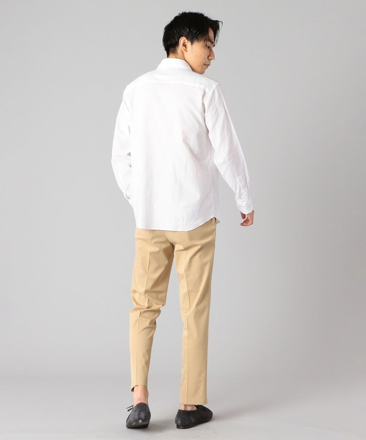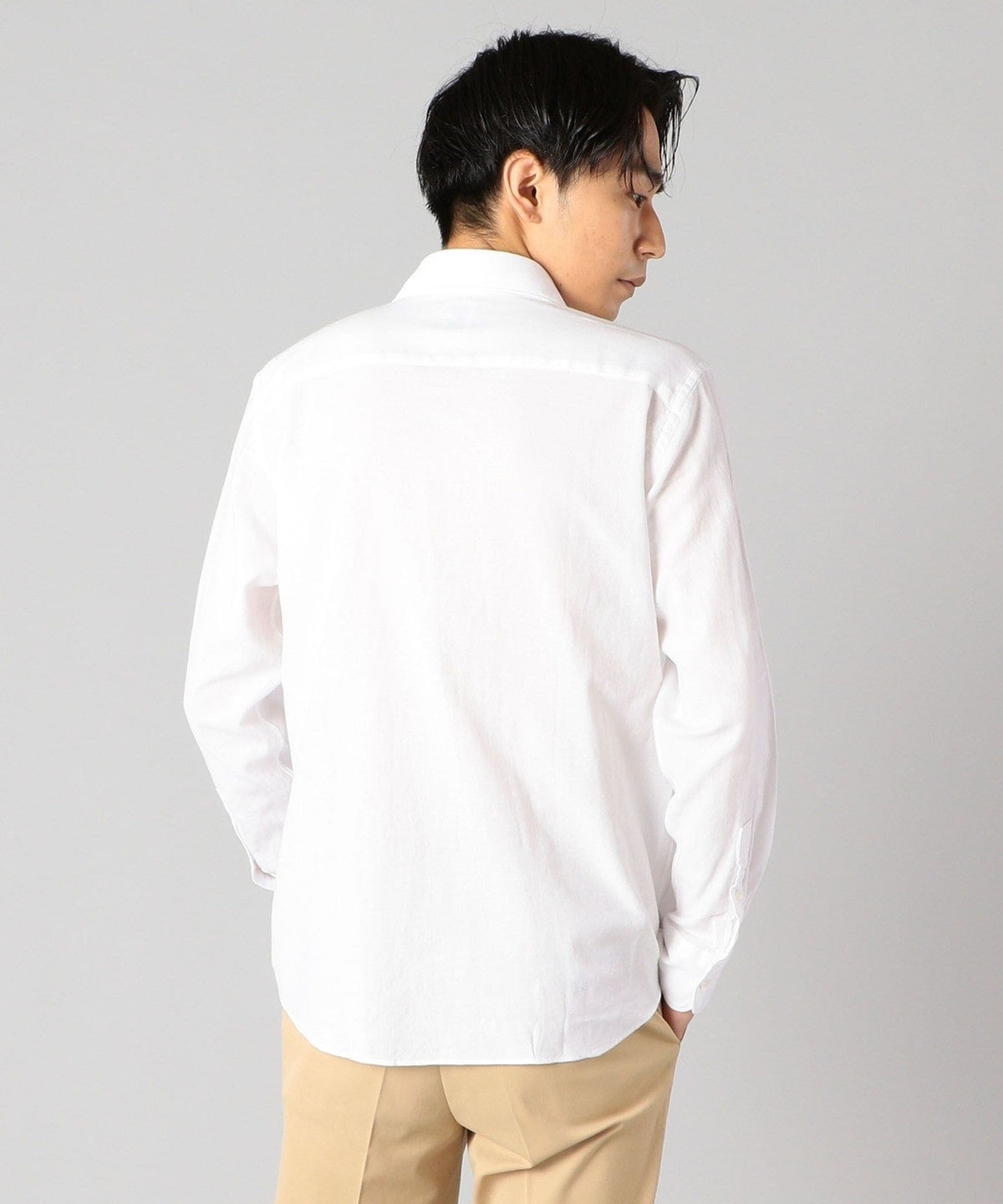 前立てをなくし、ステッチを極力省いたミニマルなデザイン。ほどよくリラックス感のあるシルエットにしており、カジュアルからキレイめなスタイルまで幅広くお使いいただけるシャツです。裾出しでもインしても決まる絶妙な着丈設定になっています。