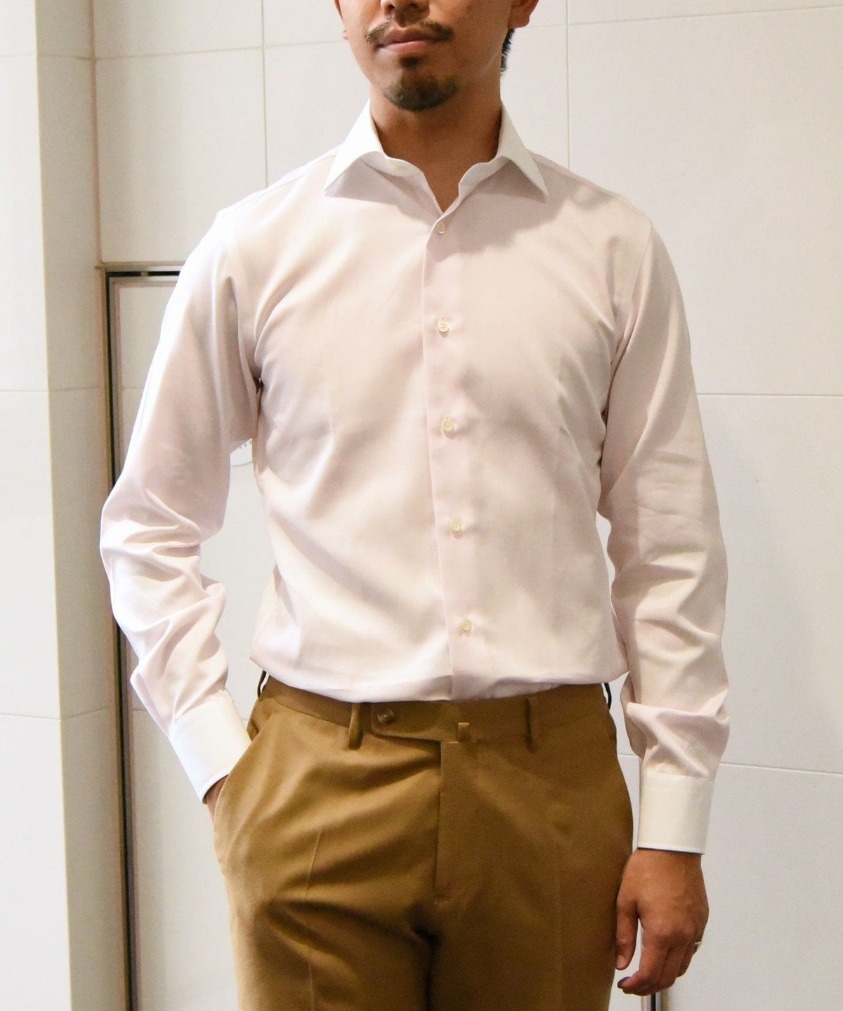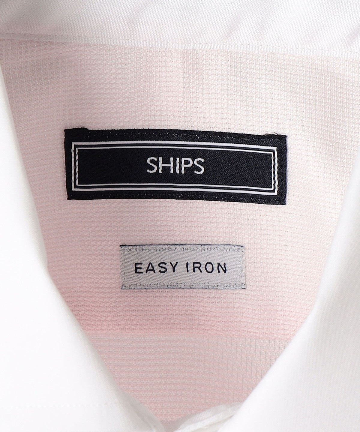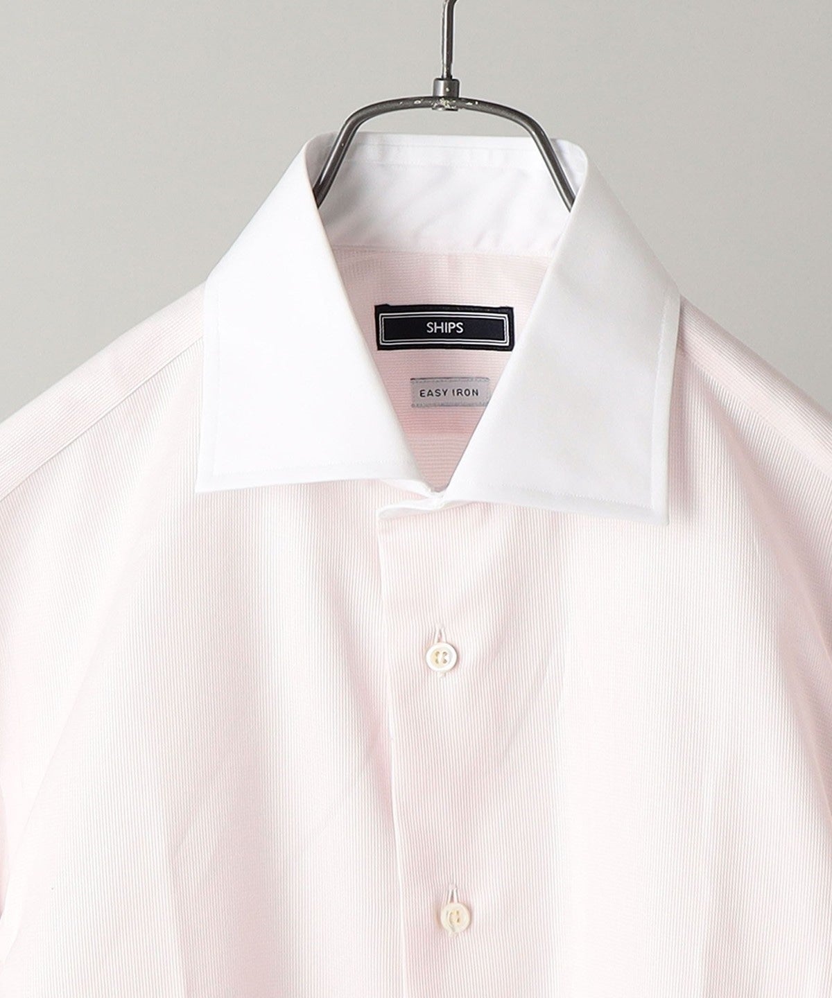 SHIPS: イージーアイロン ドビー 無地 ワイドカラー クレリック シャツ