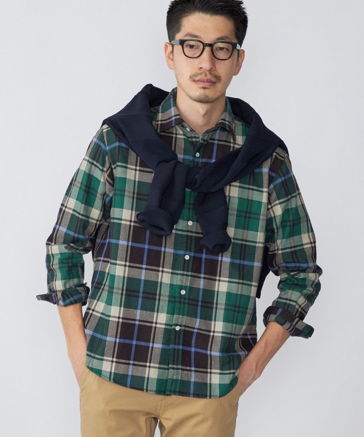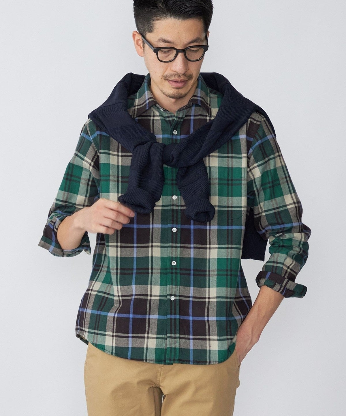 しなやかな風合いが特徴のコットンビエラ素材に、大ぶりなチェック柄を施したレギュラーカラーシャツ。