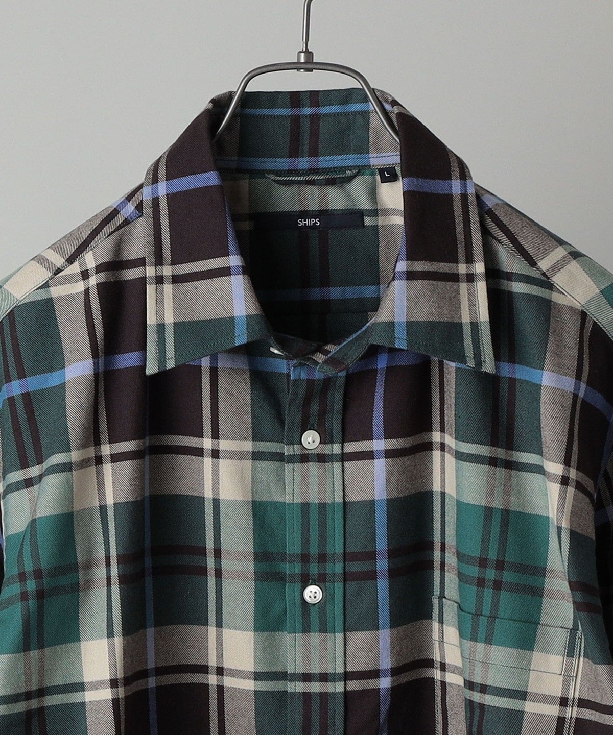 SHIPS: 綿ビエラ ビッグチェック レギュラーカラーシャツ