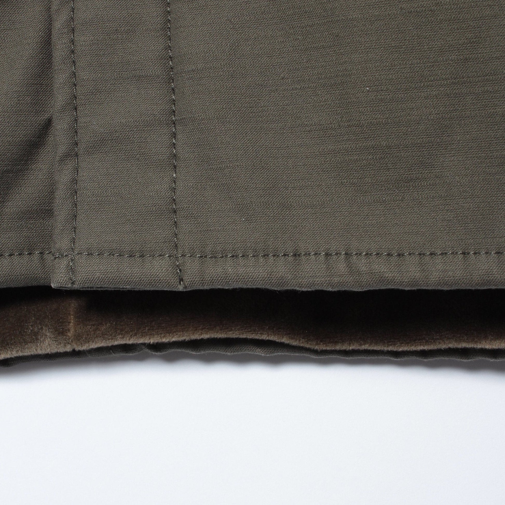 表素材は、バックサテンにピーチ起毛が加工されていてナチュラルなスラブ感と上品さを兼ねそなえた表情になっております。