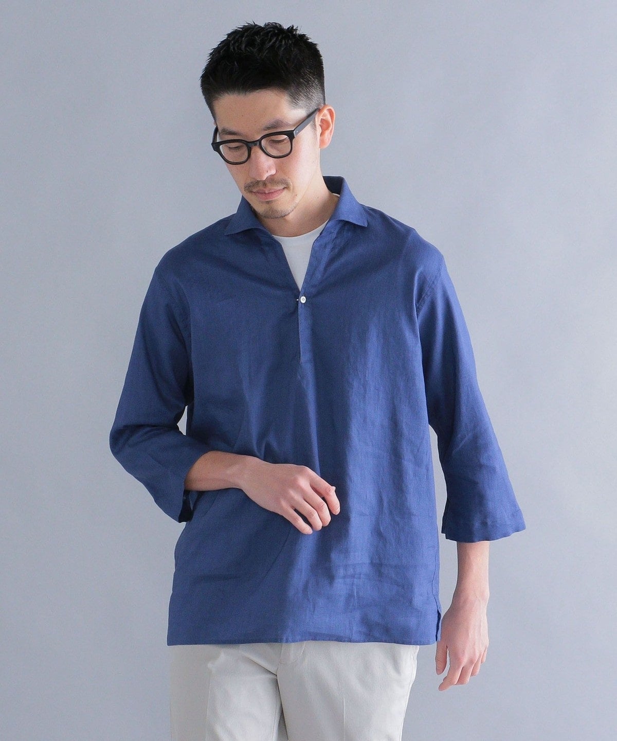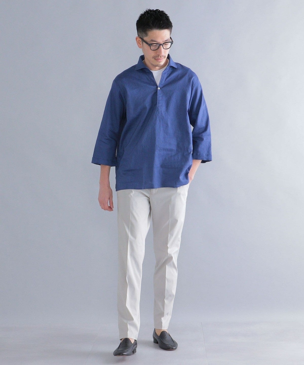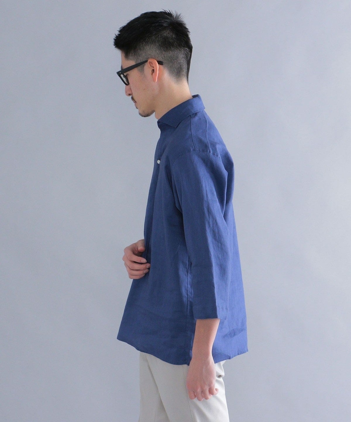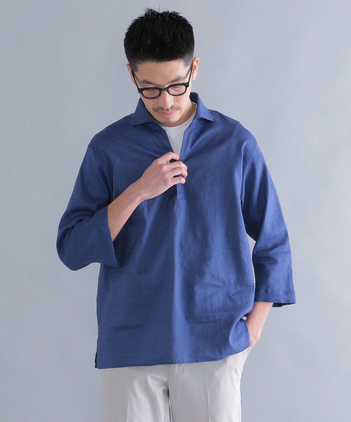 シルエットは通常のシャツと比べて少しゆったりめのパターンを組み、上品でリラックスした雰囲気を演出できるプルオーバーシャツです。