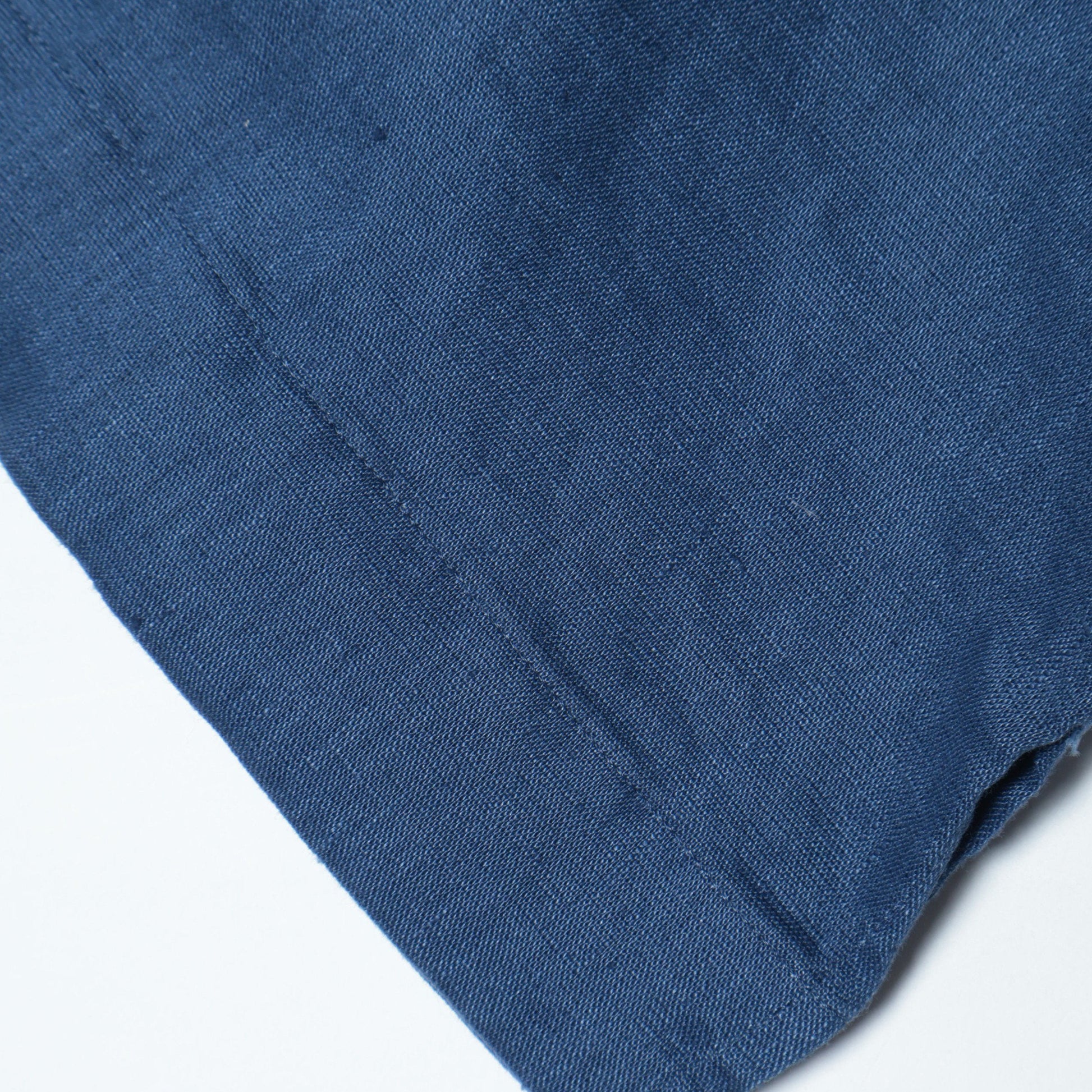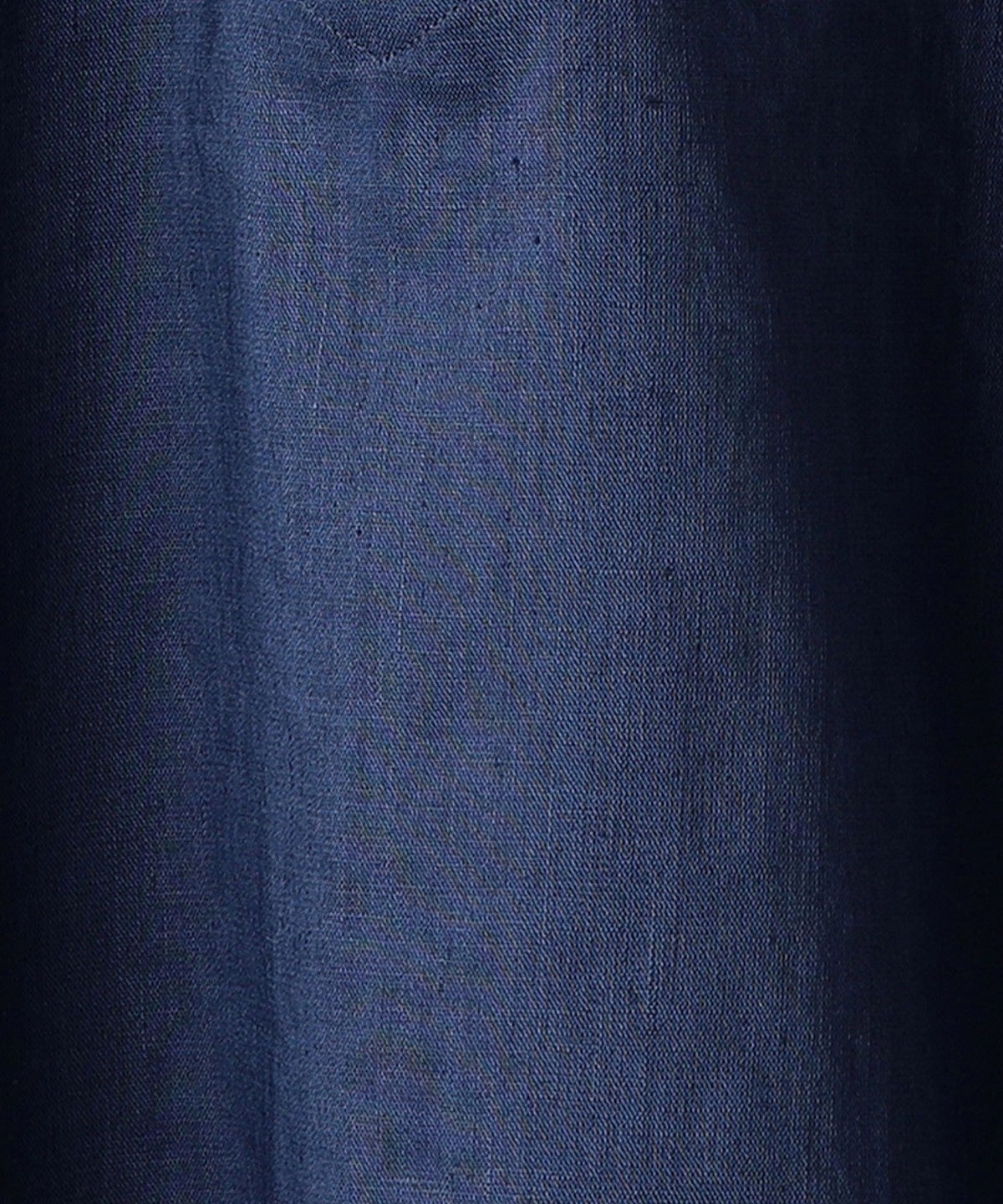 滋賀県の藤居織物に依頼し、66/1サフィランリネンとソロテックスをブレンドし織り上げた、こだわりの別注素材です。弾力性に優れ、型崩れしにくい良質な生地感に仕上がり、麻の素材感を損なうことなく機能性を高めた他にはない生地となっております。
