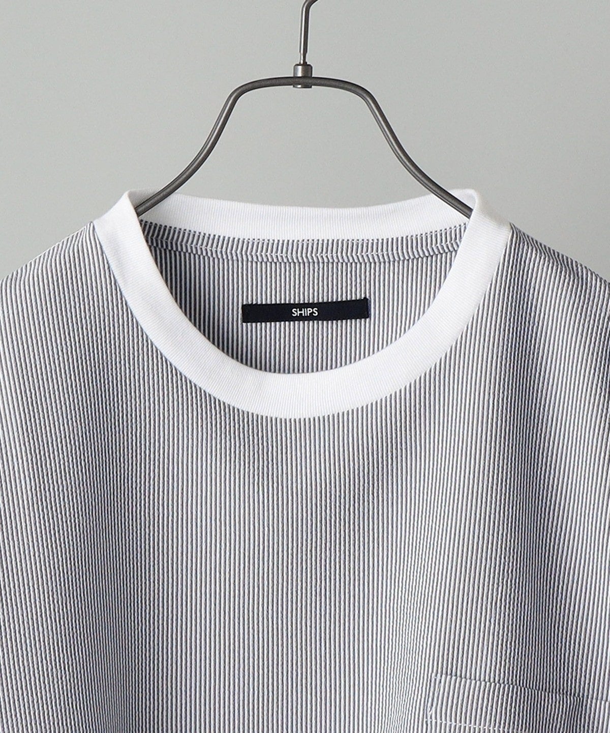 SHIPS: COOLMAX(R) シアサッカー ストライプ クルーネック Tシャツ
