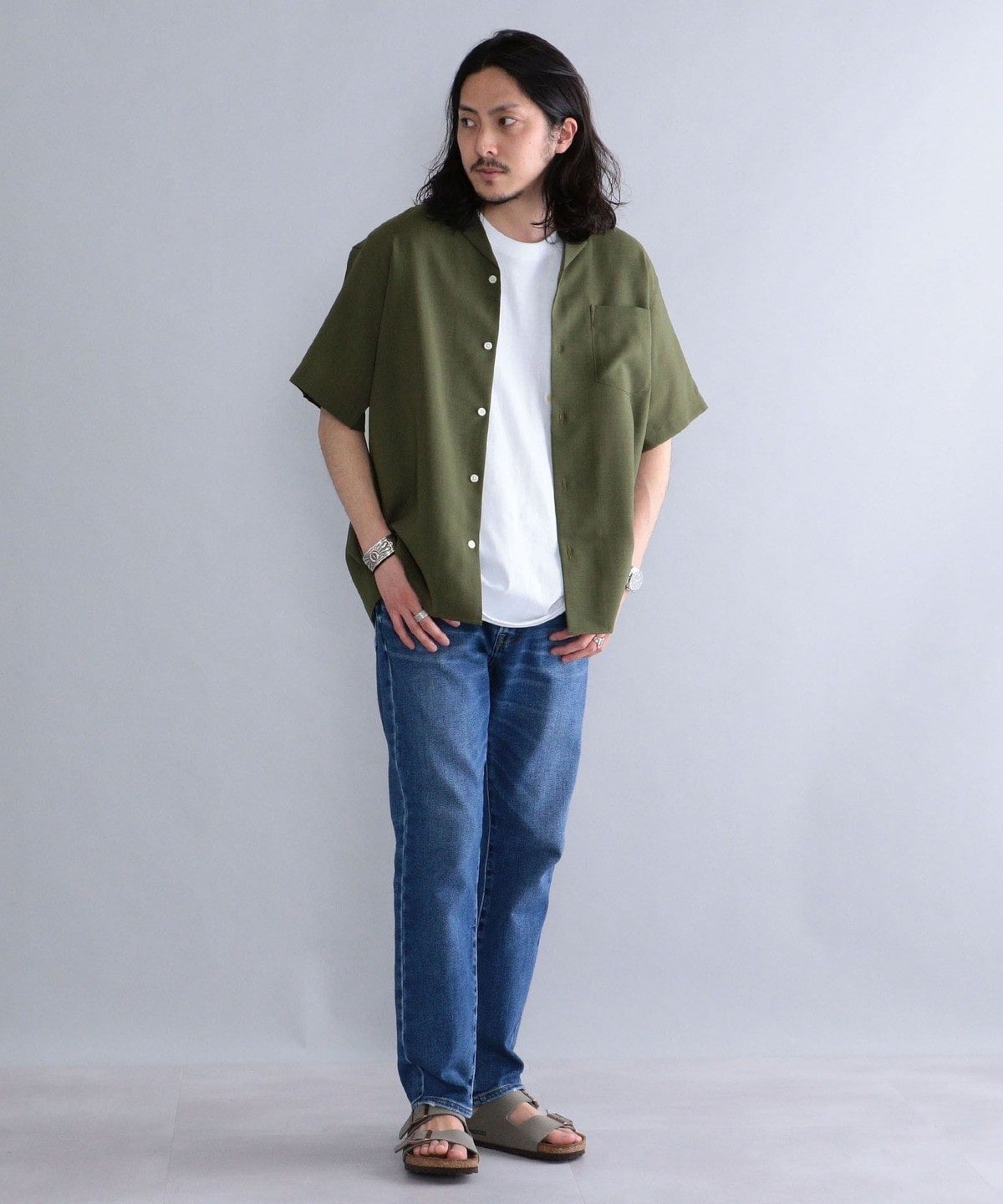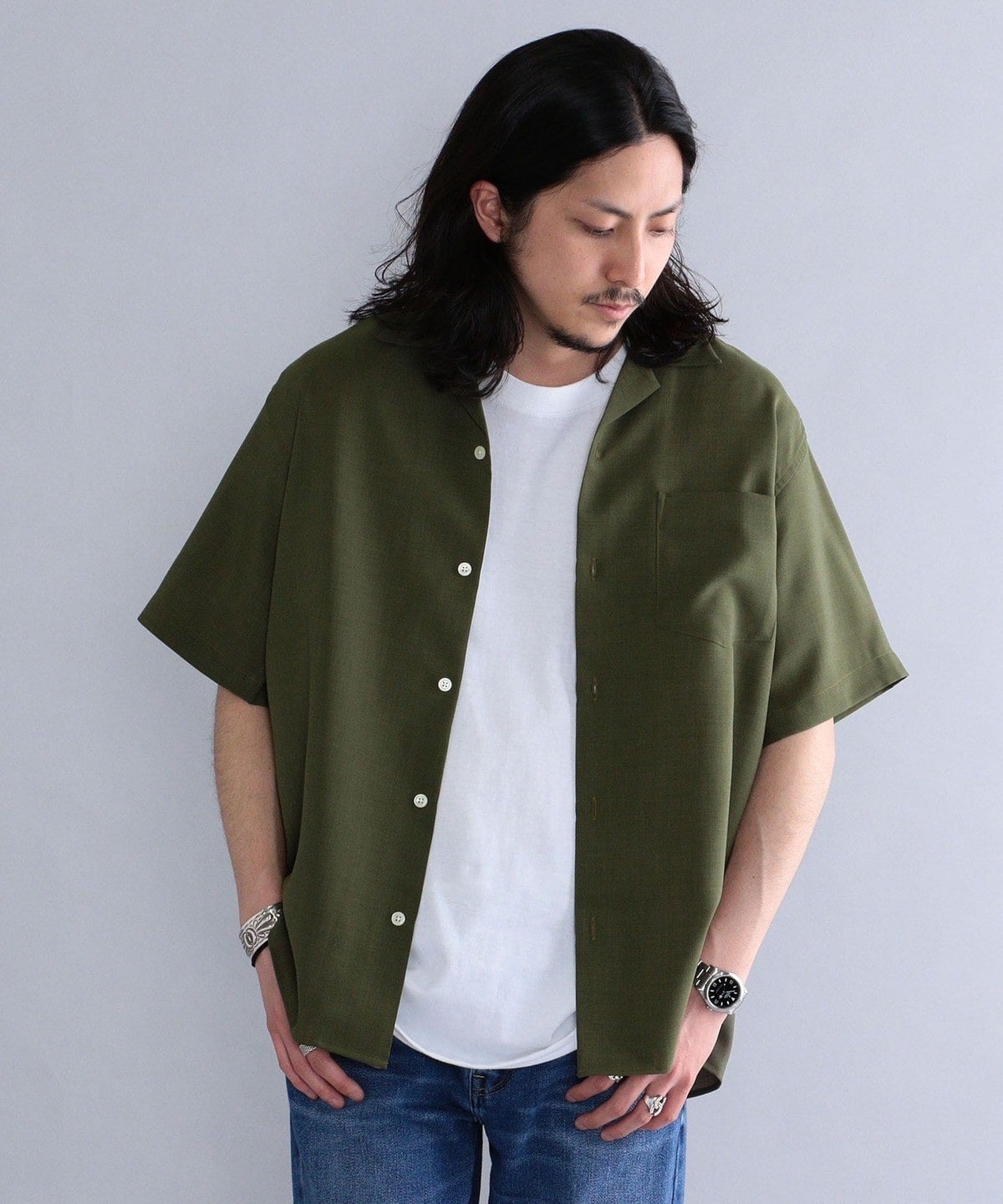 シルエットは、ゆったりめのサイズ感ながら開きすぎないオープンカラーの仕様にこだわり、清潔感が演出されるよう仕上げました。