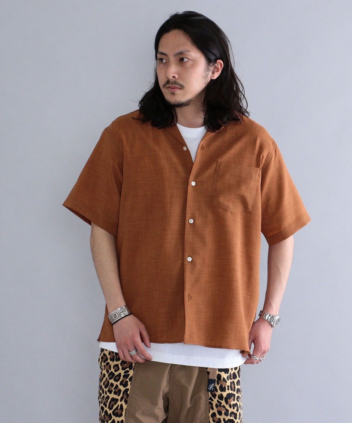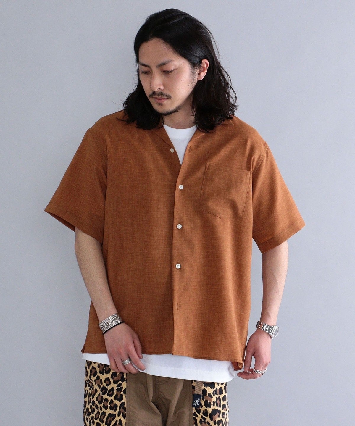 シルエットは、ゆったりめのサイズ感ながら開きすぎないオープンカラーの仕様にこだわり、清潔感が演出されるよう仕上げました。
