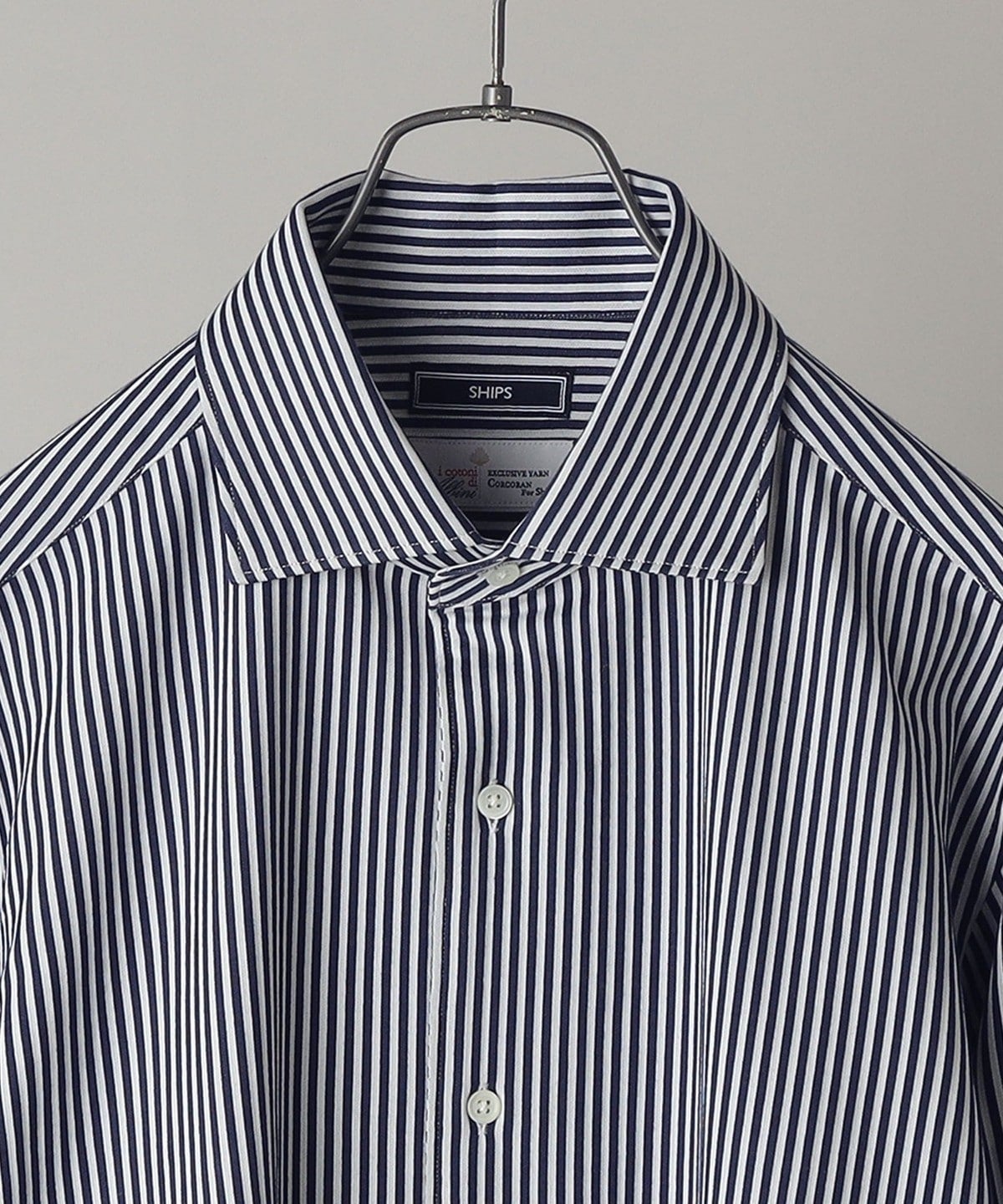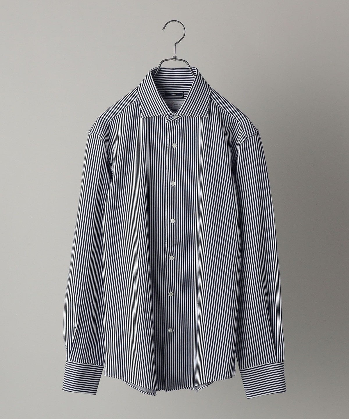 SHIPS:<吸水 速乾>ALBINI ジャージー ストライプ イタリアン ワイドカラー シャツ