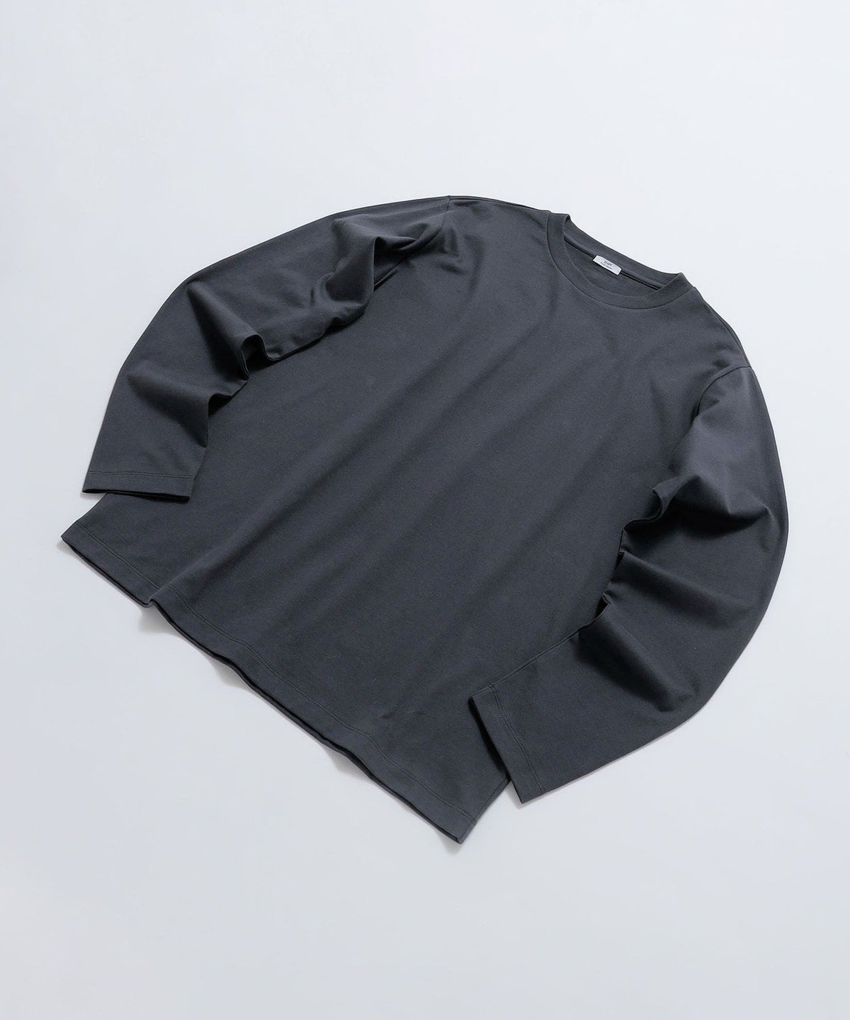 一枚でも着やすいよう、着丈の設定も長すぎず、身幅に気持ちゆとりをもたせた適度なフィット感を実現しており、ストレスフリーな着心地が相まった着まわし力の高い逸品です。
