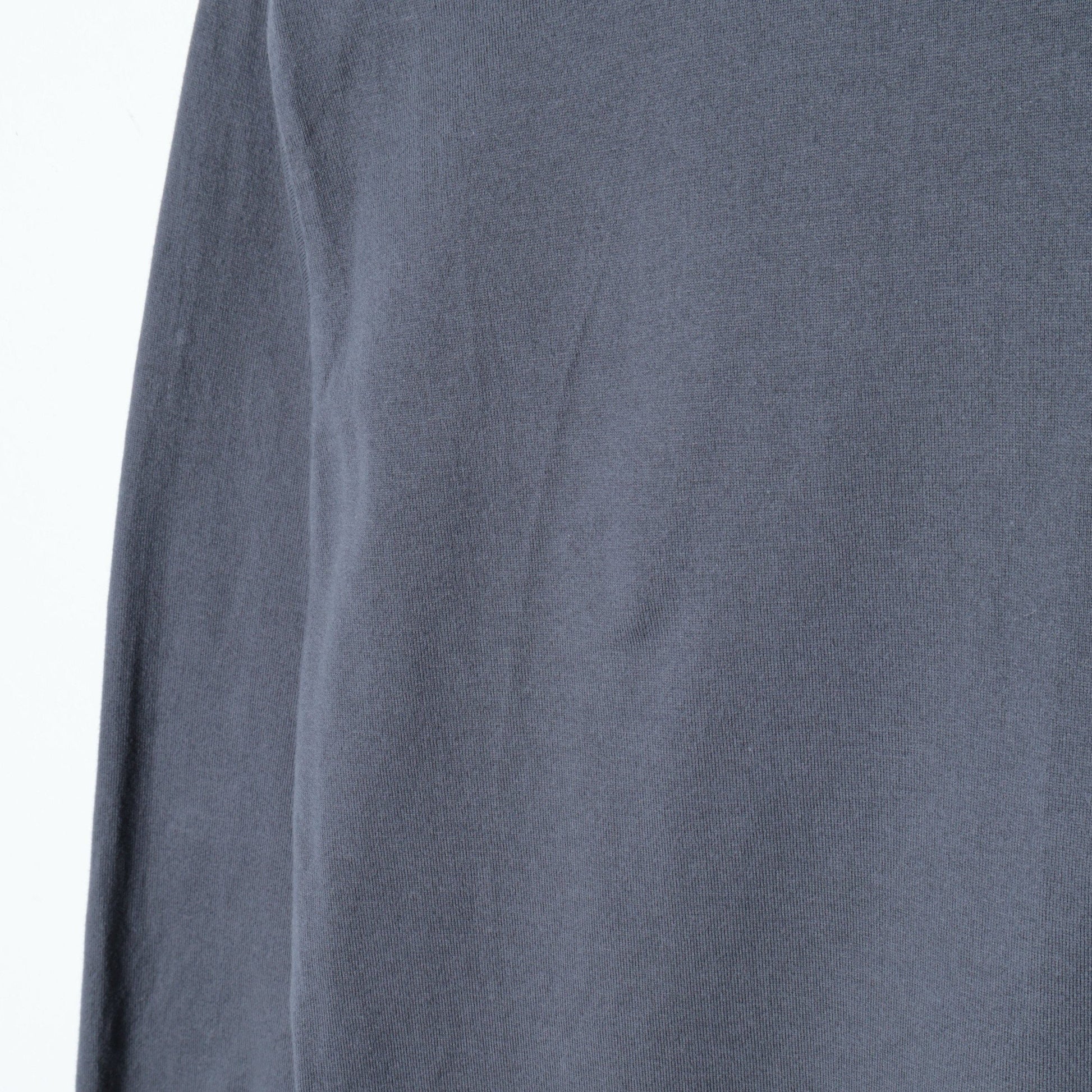 またこの生地は、ヘビーになりすぎないよう編み機をアレンジをし、ほどよい度詰め感で編んでいる為、度目がかなり詰まりつつも、風合いが硬くなりすぎない絶妙な仕上がりに。