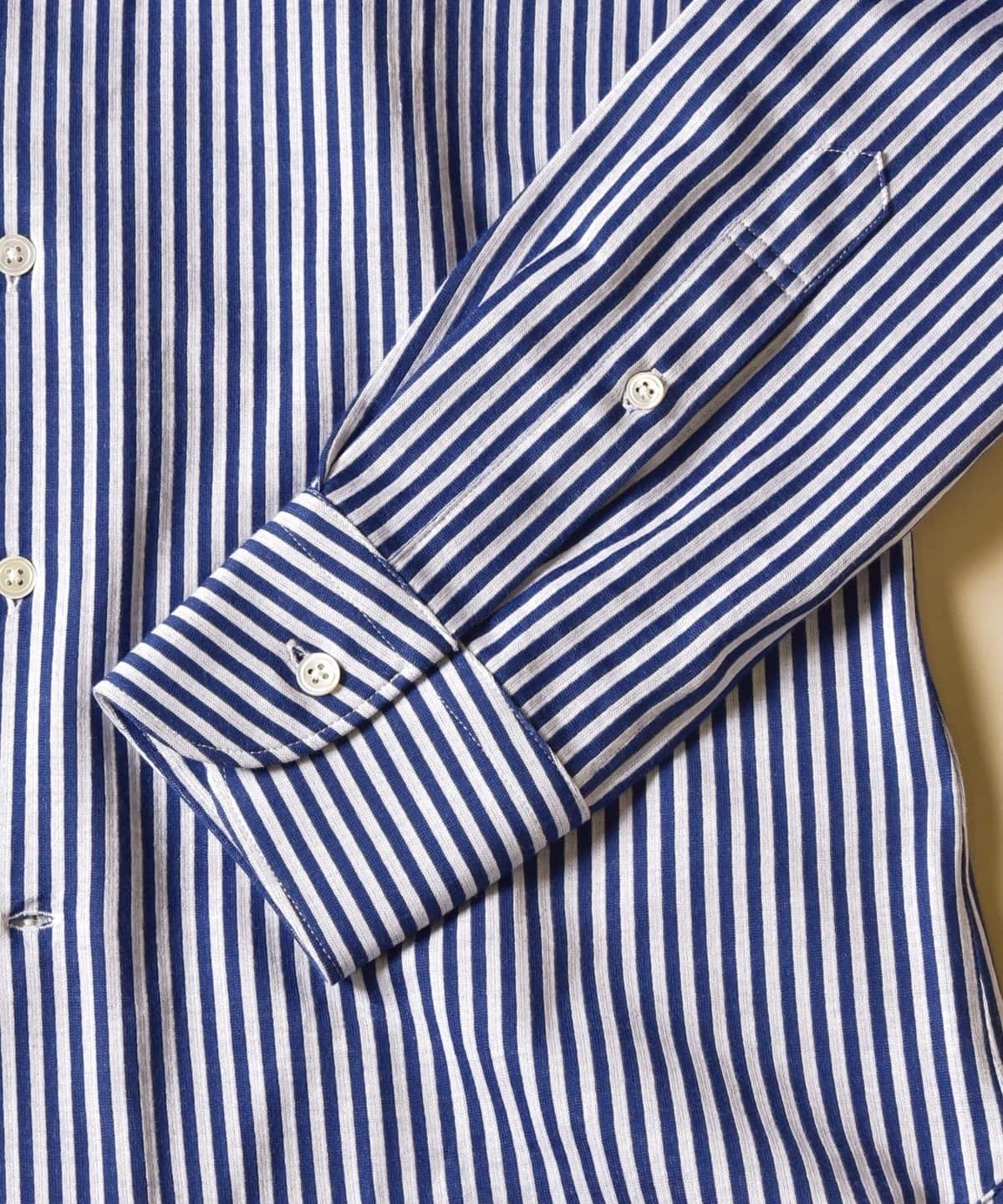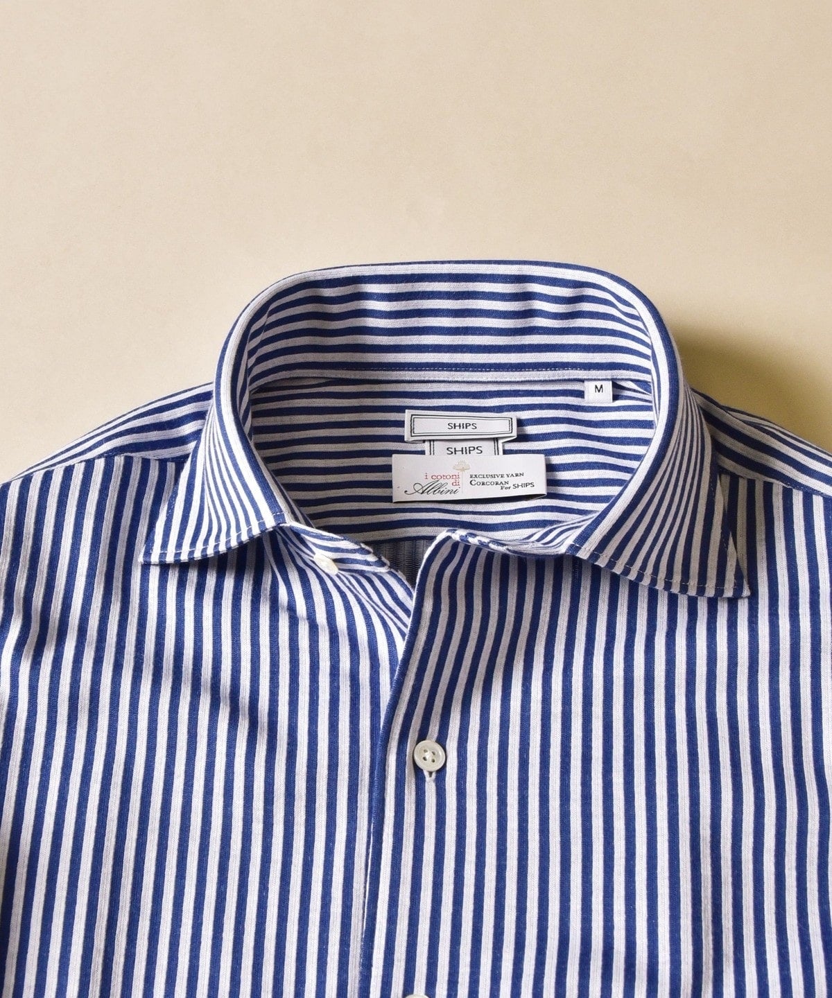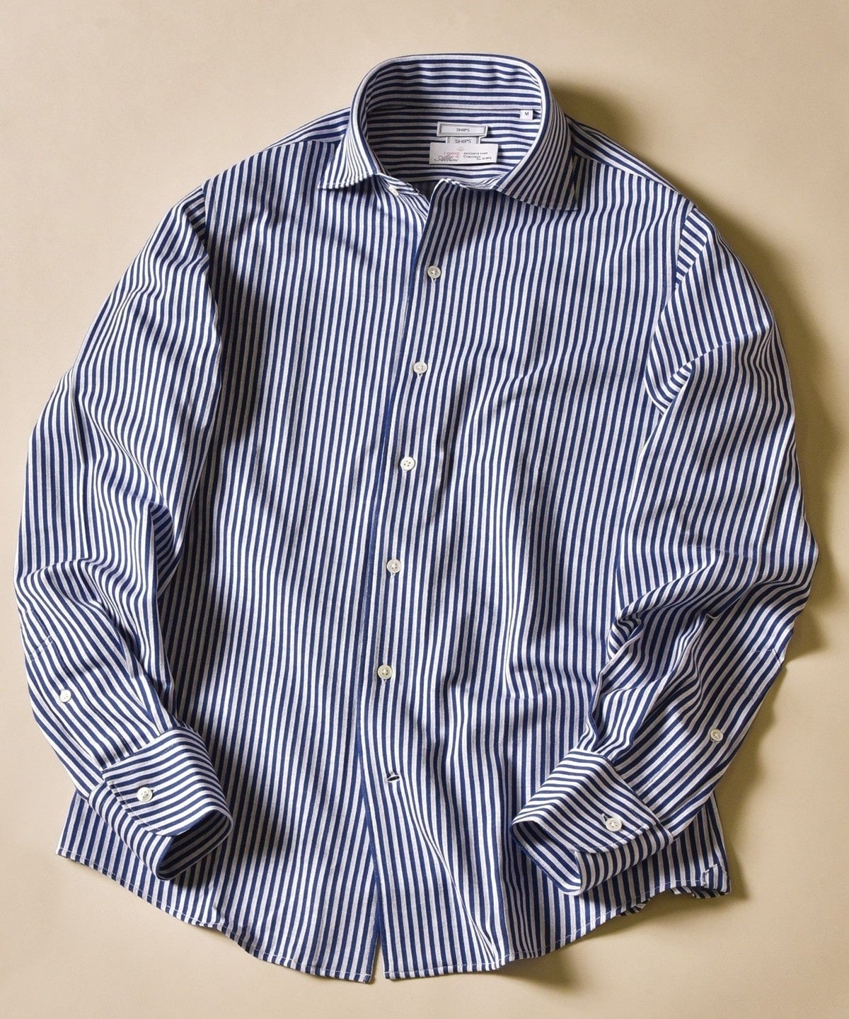 SD:【テレワーク対応可能】ALBINI社製生地 ジャージ ストライプ ワンピースカラー シャツ