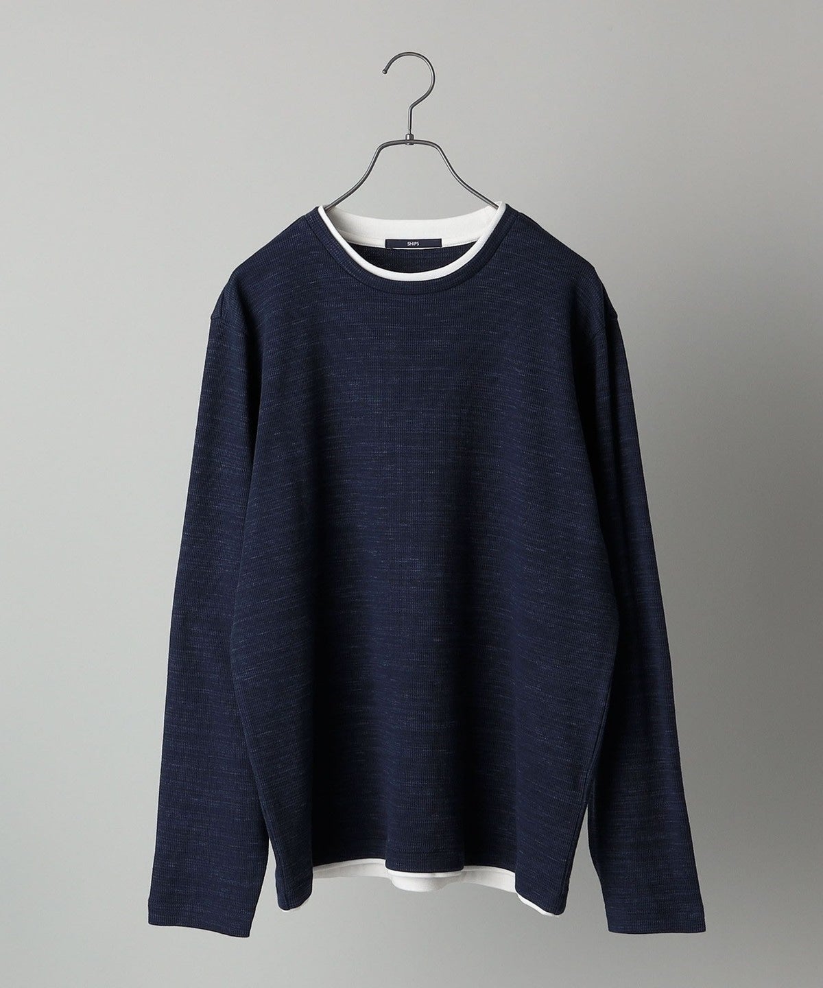 SHIPS: ワッフル フェイクレイヤード クルーネック Tシャツ (ロンT)
