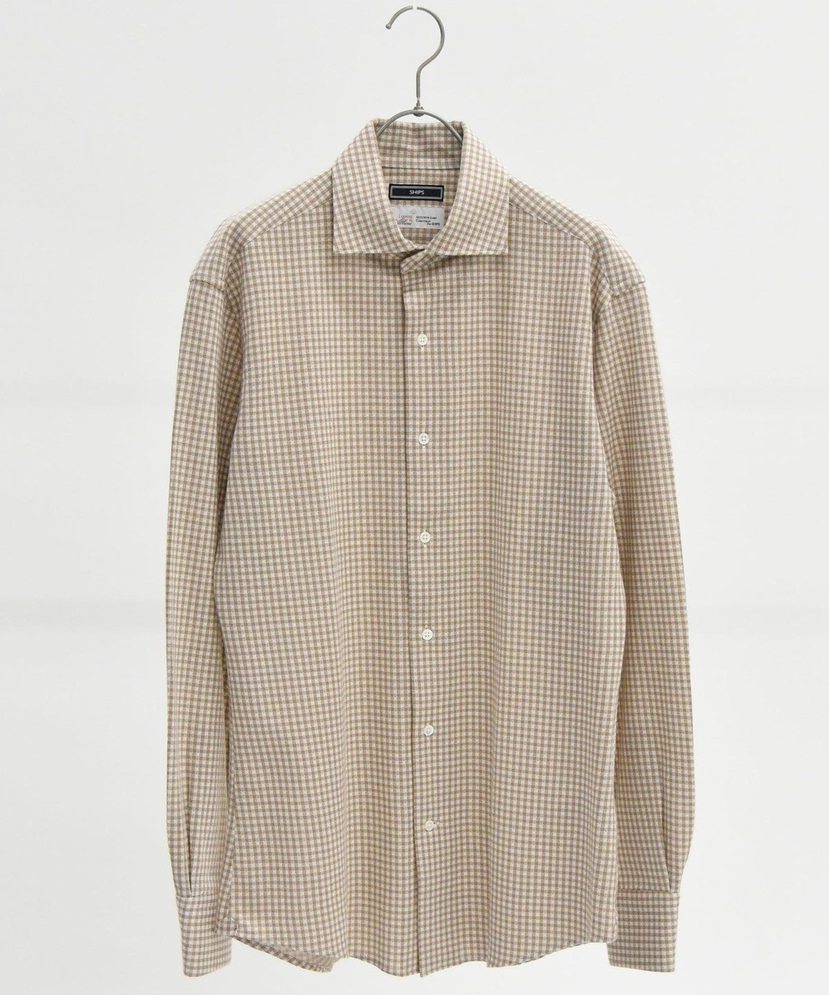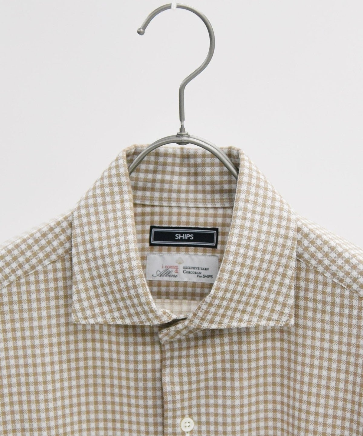 SHIPS:ALBINI ジャージー ギンガムチェック イタリアン ワイドカラー シャツ