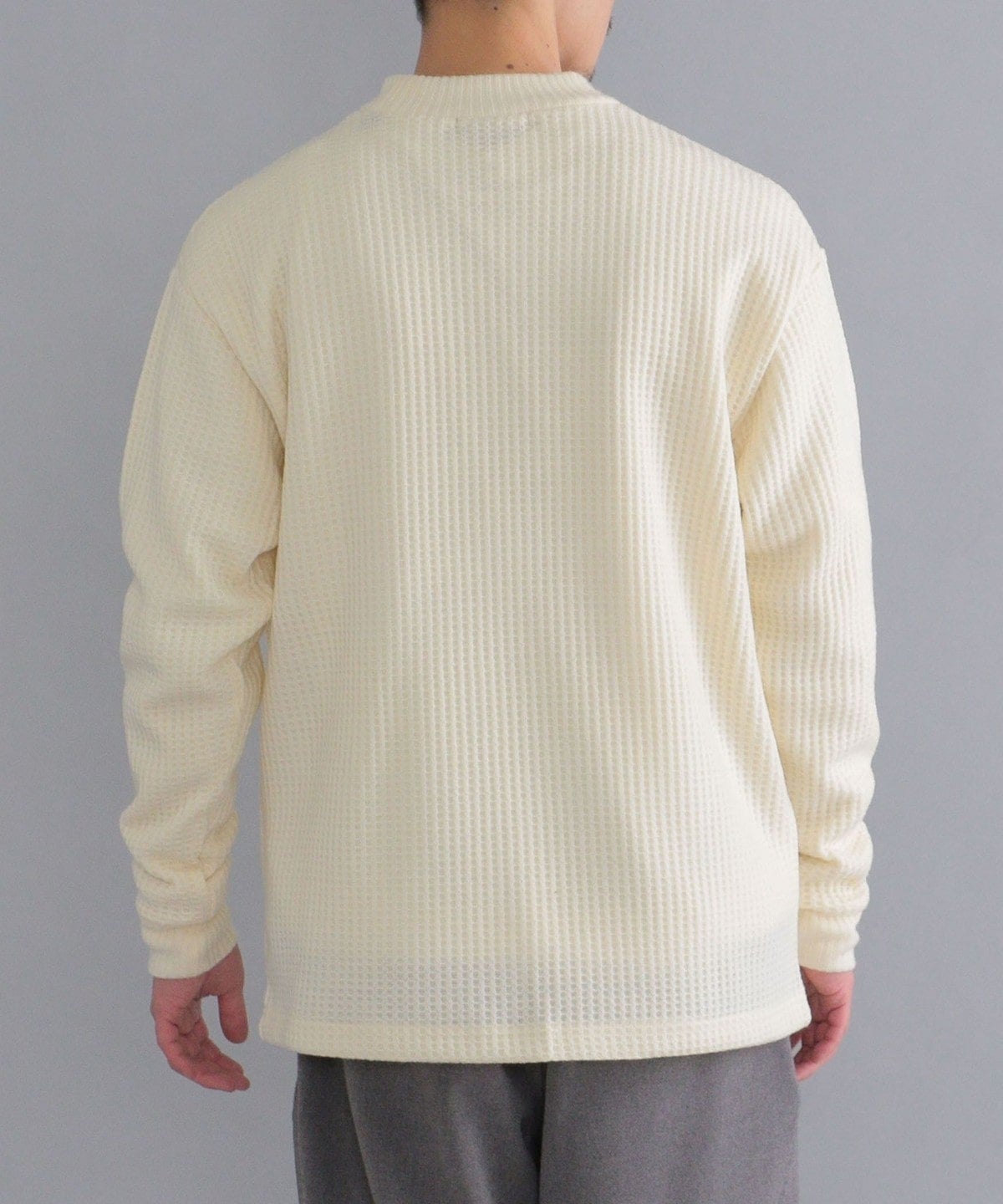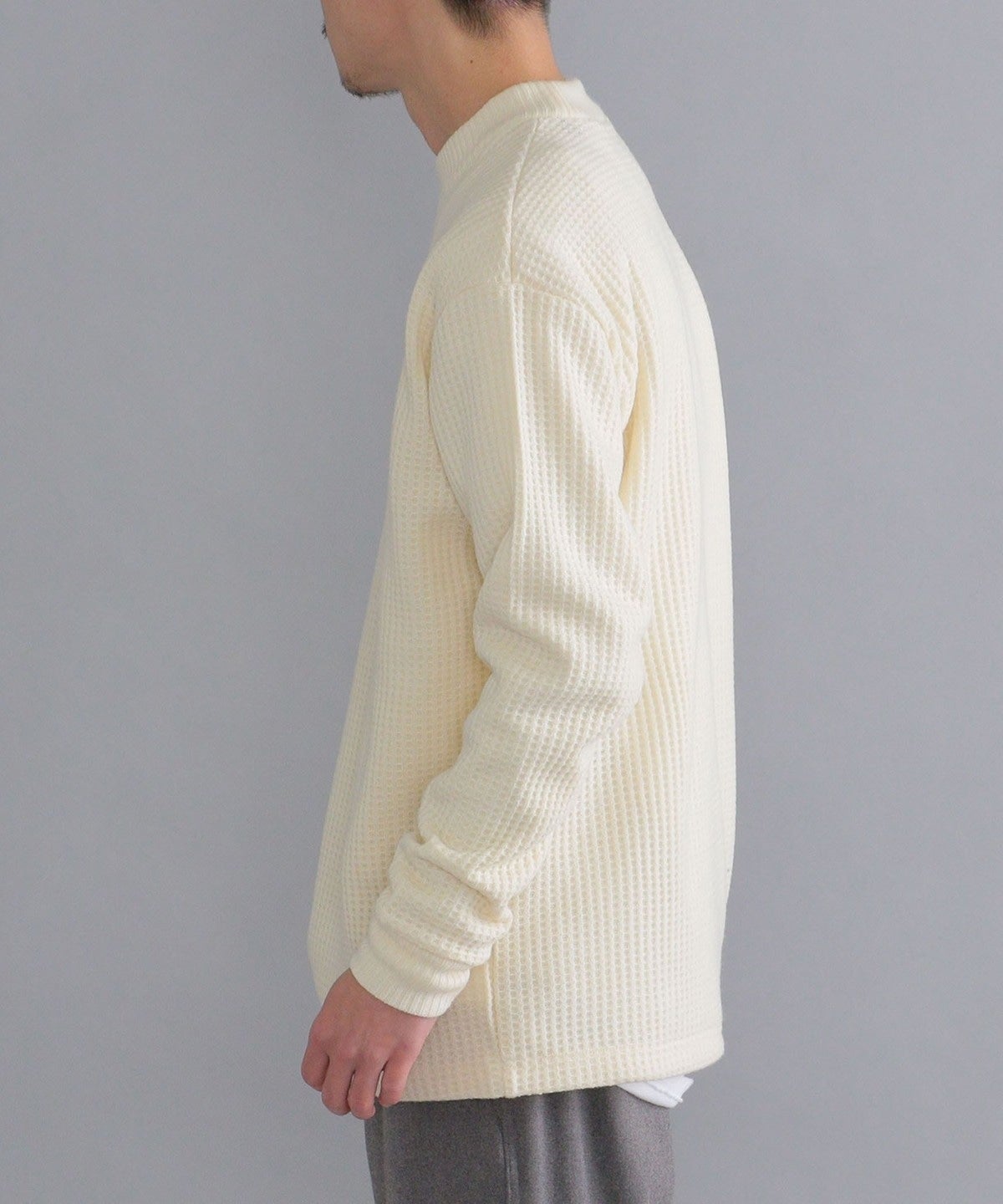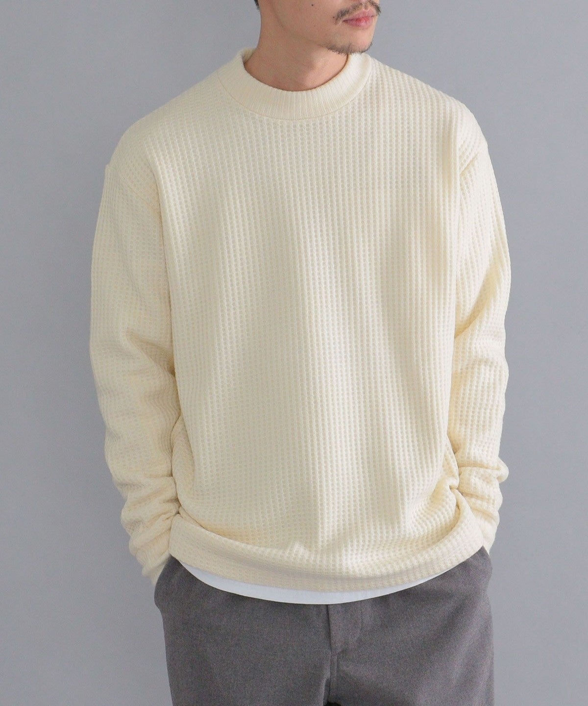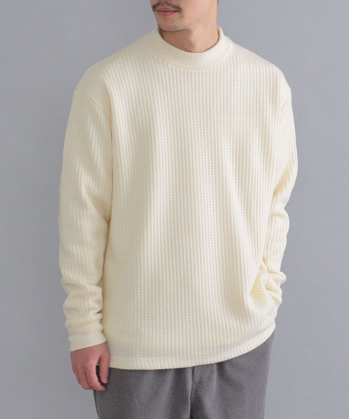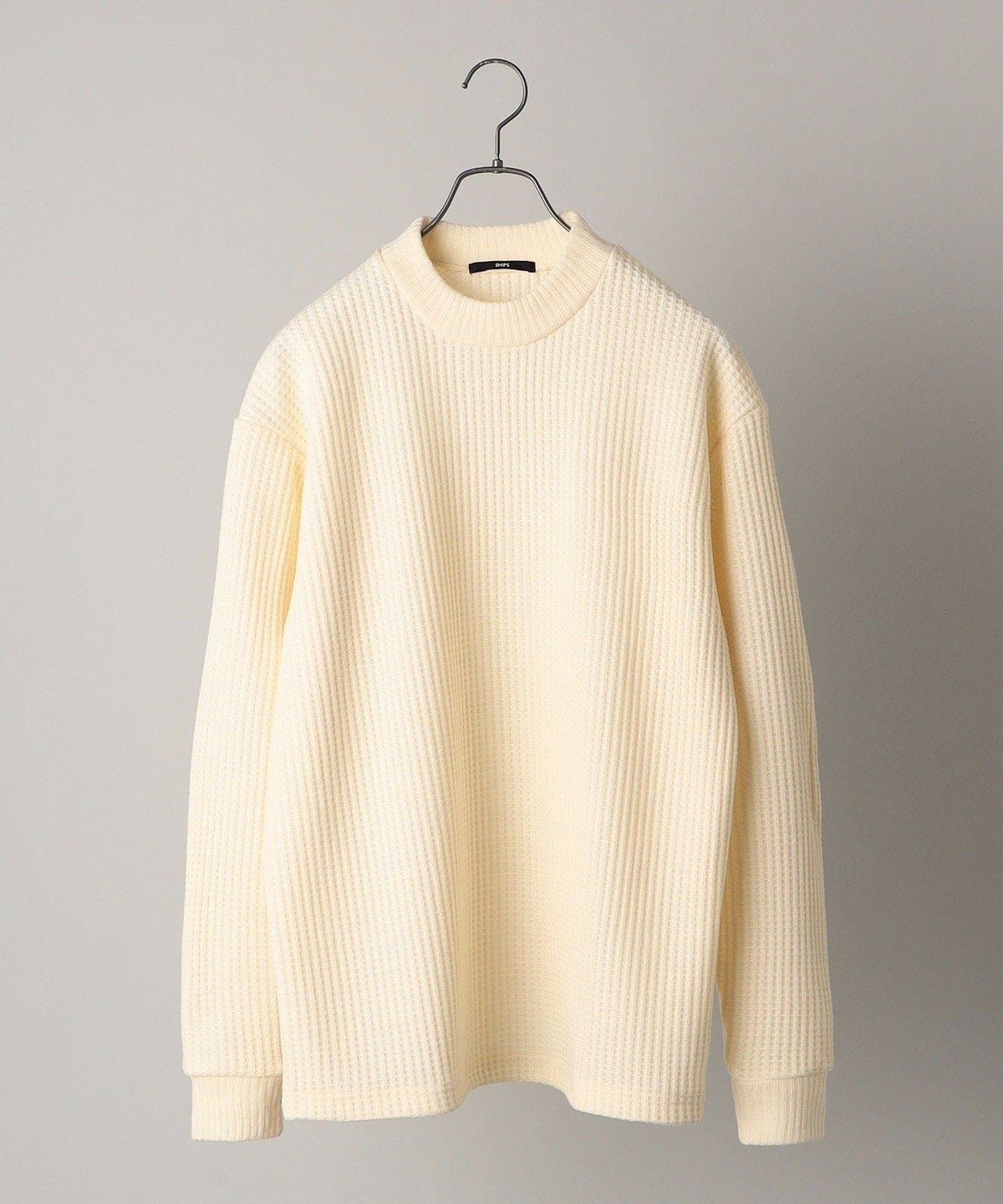 大きめなワッフル編地が特徴のモックネックプルオーバー。