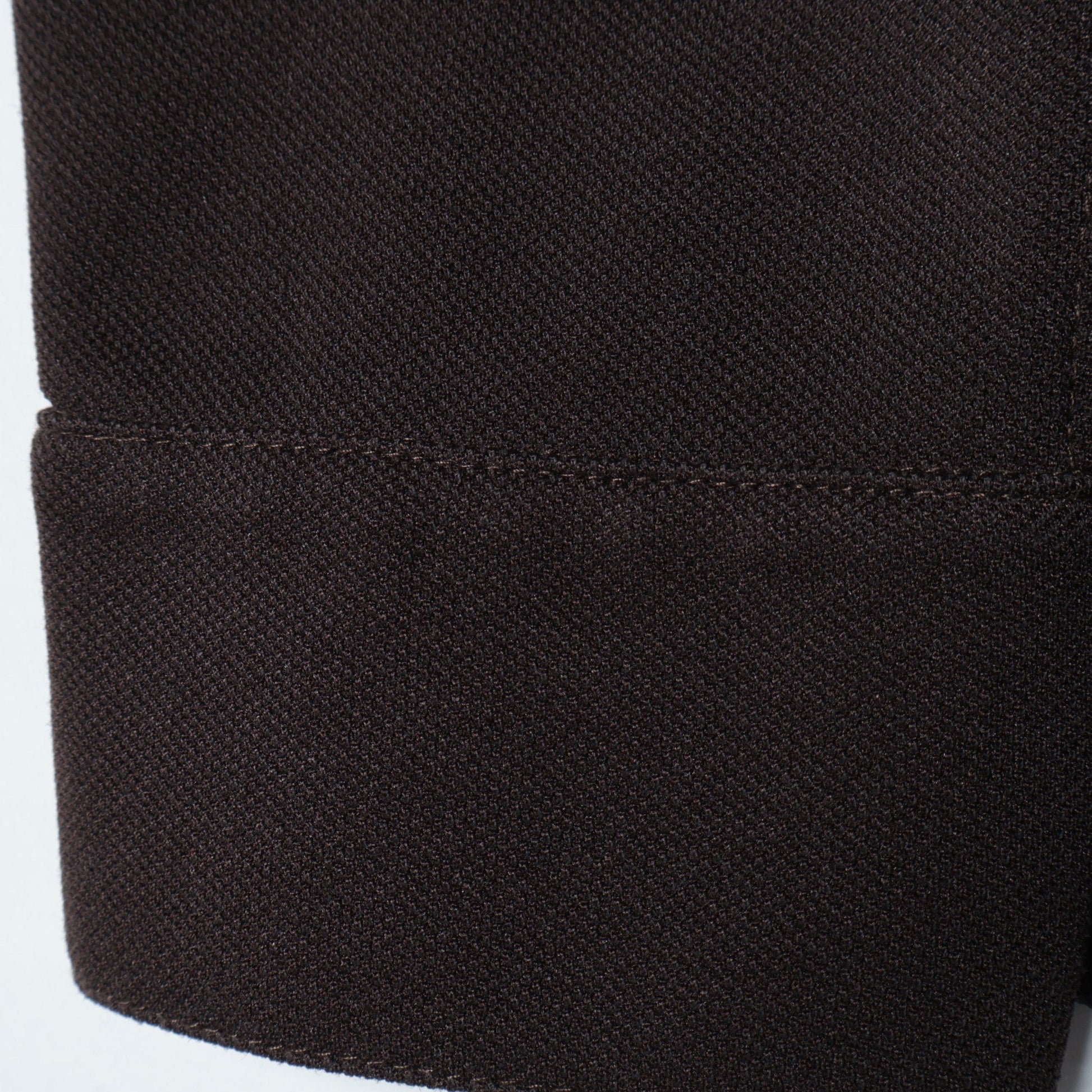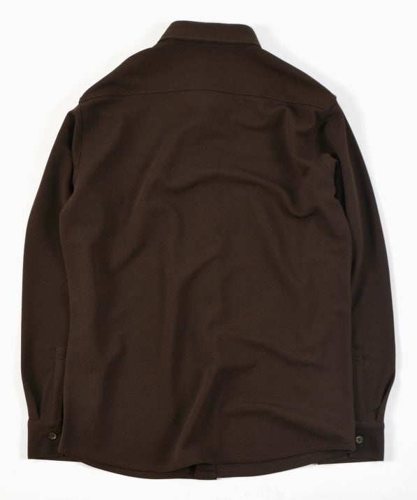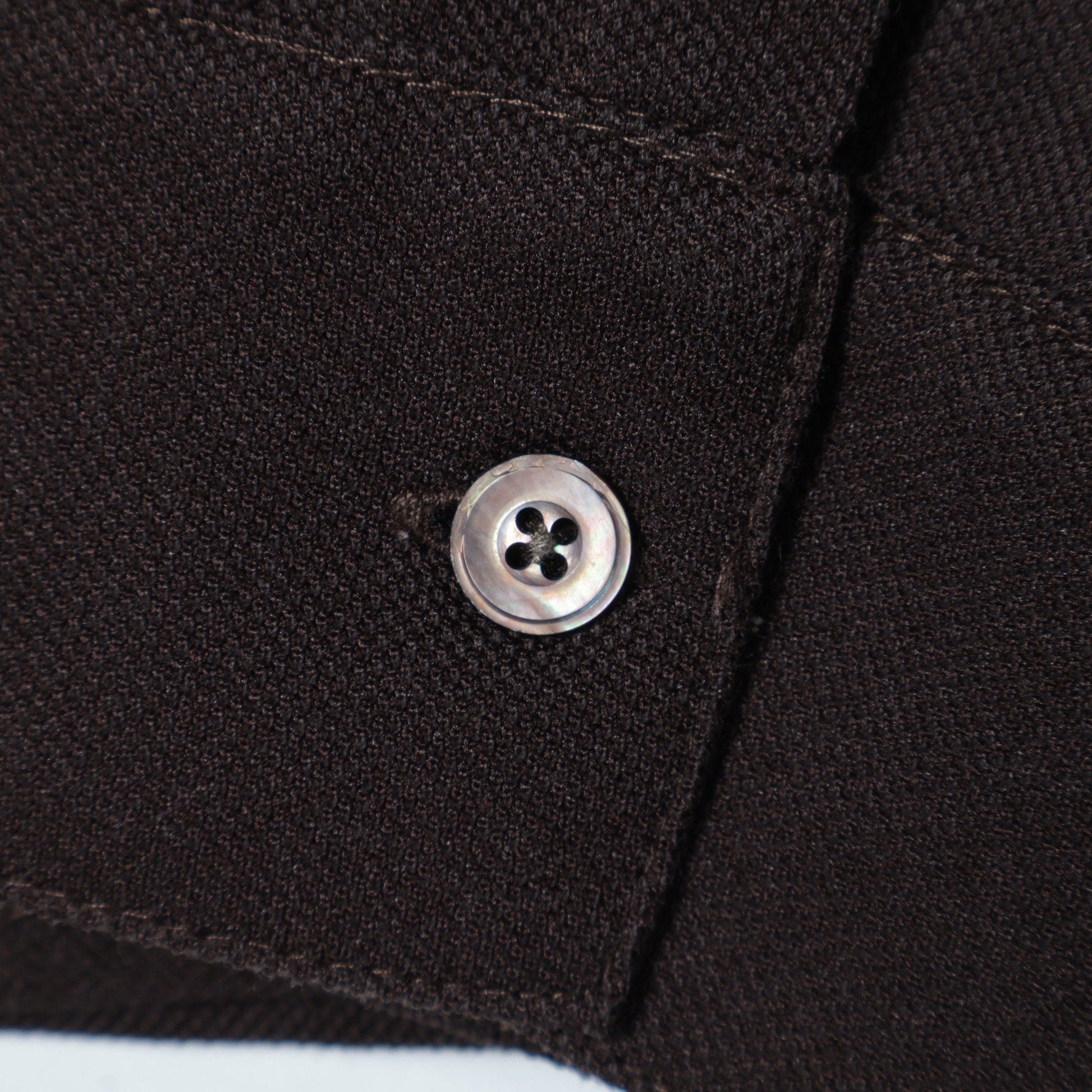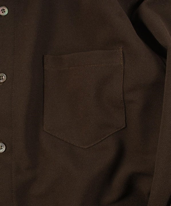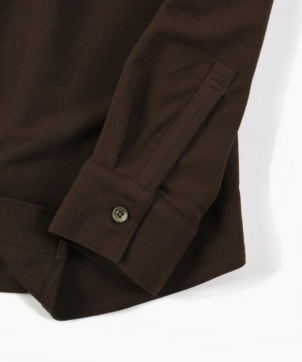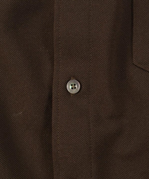 また、裾のラウンドを緩やかに設定し、タックインでもアウトでも対応できるよう調整を重ねた、オンオフ兼用シャツに仕上げ、ラグジュアリーな雰囲気を纏ったツヤのある別注カノコ素材に合わせて、ボタンも高級感のあるボタンを採用するなど、細部までこだわって製作した渾身の逸品となっております。