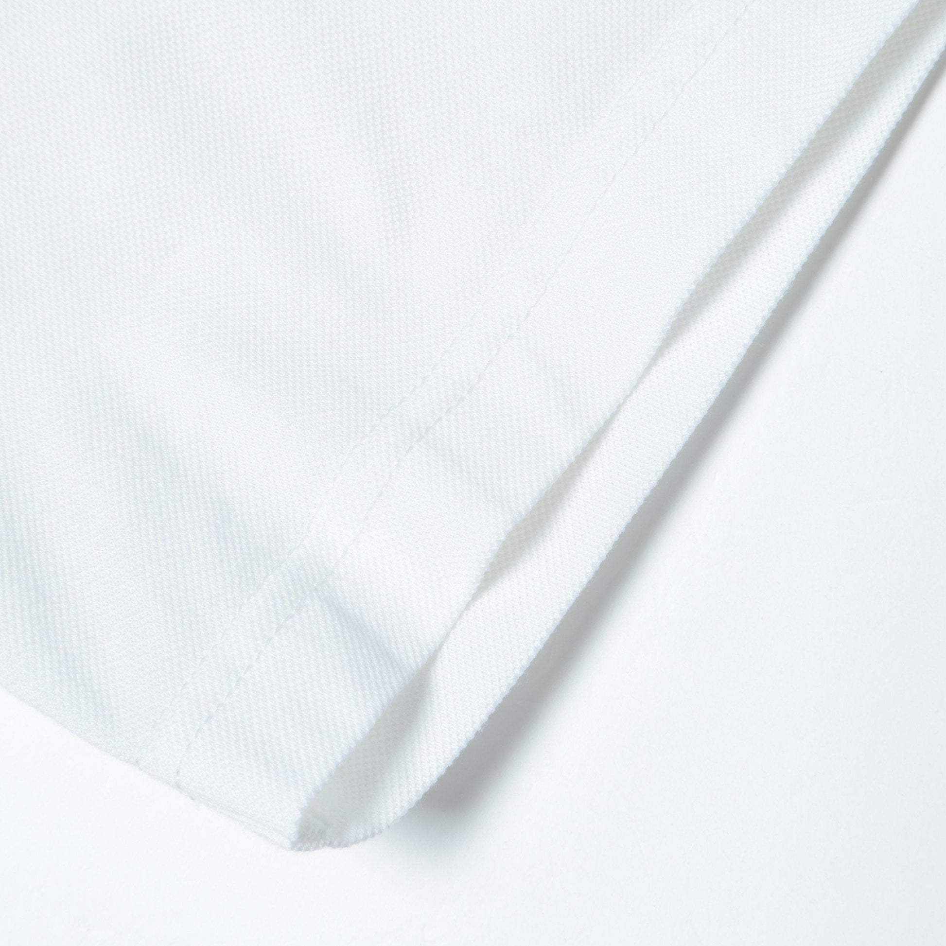 伊アルビニグループの紡績会社”アイコットーニ社”の糸を日本で先染めし、80/1の糸を双糸引きして32Gに編み立てた素材。毎シーズン好評の鹿の子素材です。鹿の子のドライな素材感と、32ゲージで編みたてられた事による柔らかい肌触り、滑らかさと光沢感が特徴で、上品な印象に仕上がっています。