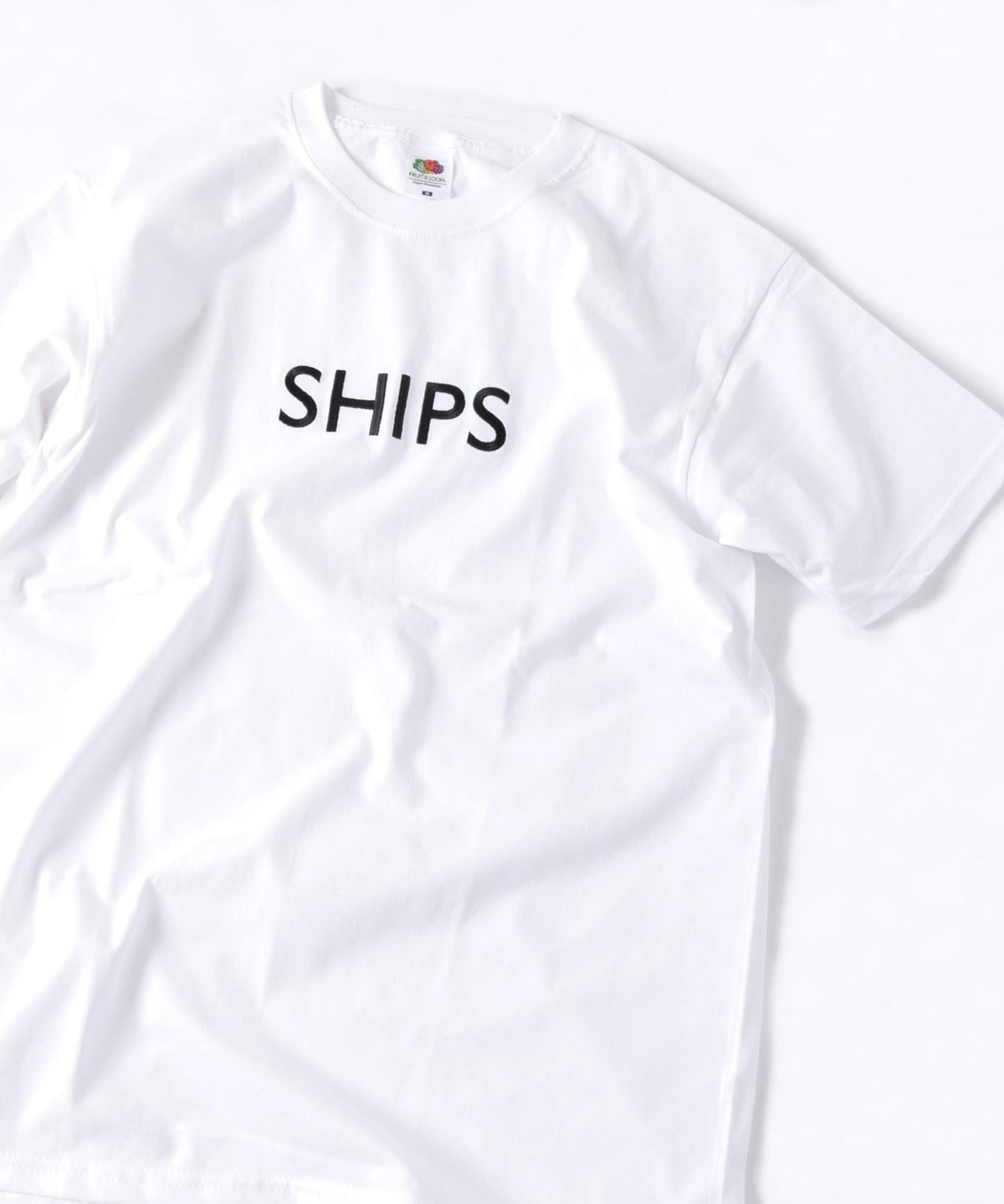 【SHIPS】ロゴを立体感のある刺繍で表現したTシャツです。ボディには、パックTシャツなどを展開しカジュアルウエアとして160年を超える歴史を持つアメリカ生まれの 《FRUIT OF THE LOOM》のボディを使用。