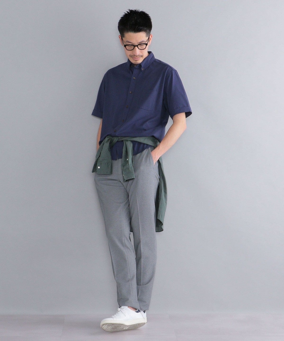接触冷感素材で夏場でも快適!カジュアルからビジネスまで着回し可能な半袖ボタンダウンシャツ