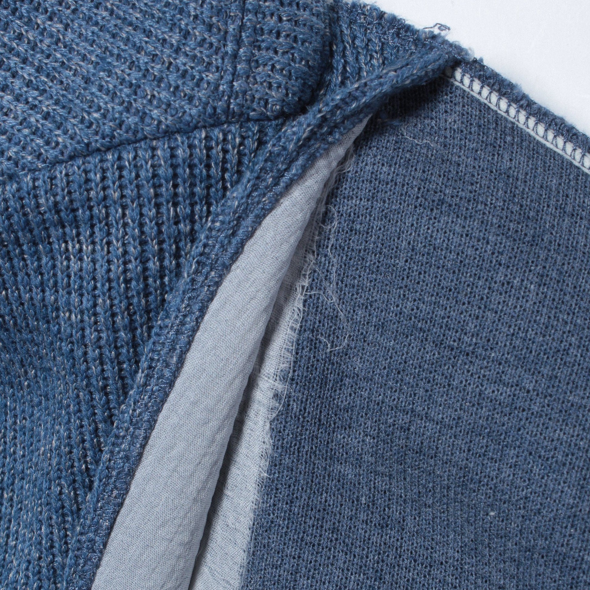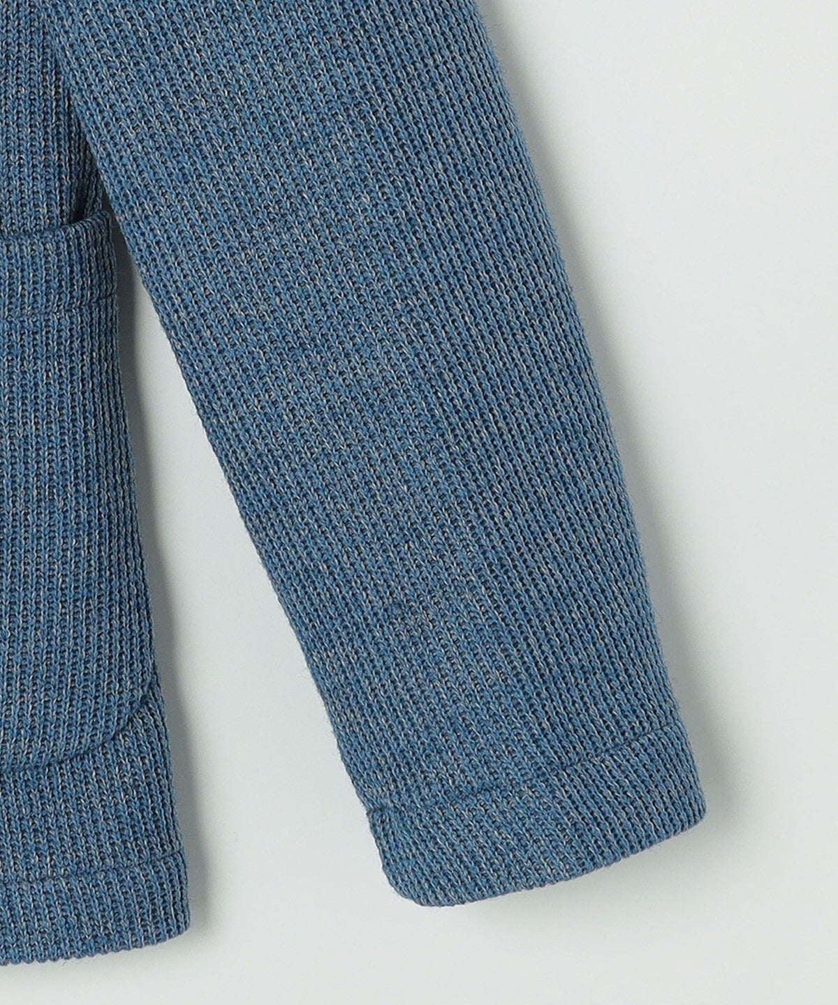 優れたストレッチ性、伸長回復性を持つ機能素材"TEXBRID(R)"をブレンドし、カーディガンジャケットとして最適な生地感、柔らかさのある素材感を追求しました。撚杢の畔編みにすることでよりニットライクでやわらかな表情に。立体感のある編柄の独特の存在感は損なうことなく、ジャージ素材の快適な着心地を実現。