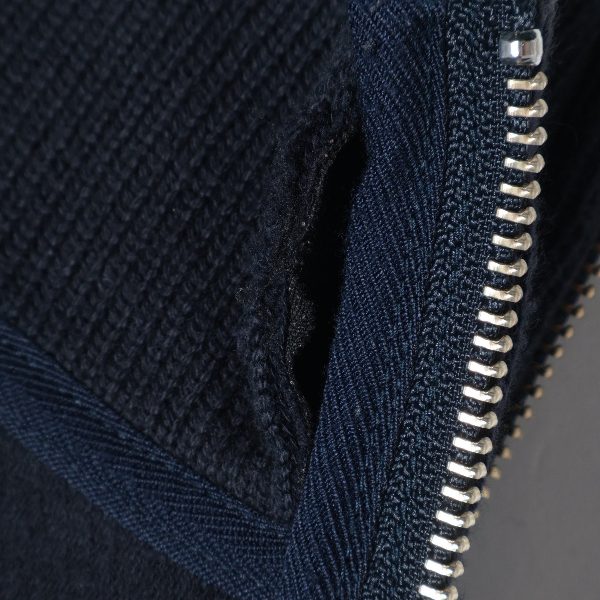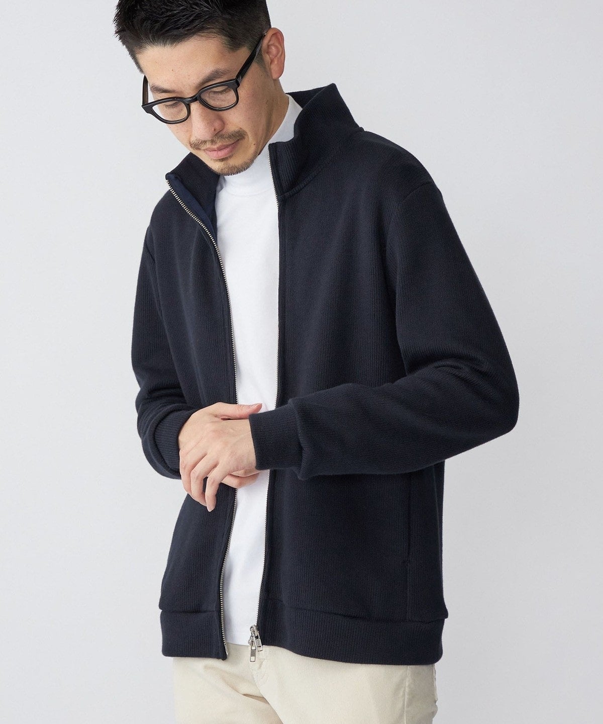 異なるゲージで編めるクォーターニット素材を使用したドライバーズニットカーディガン。