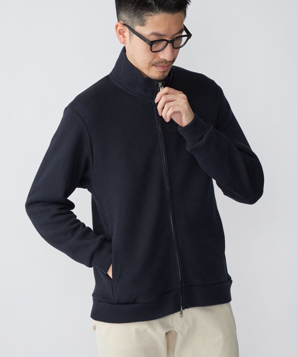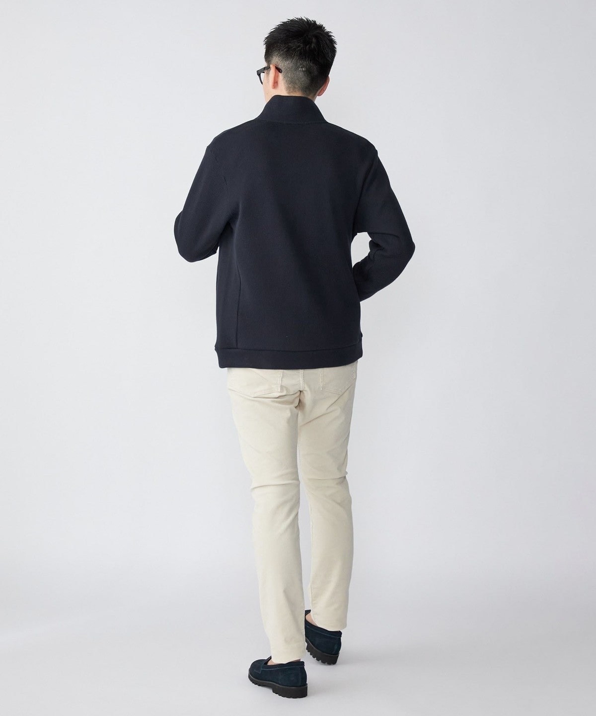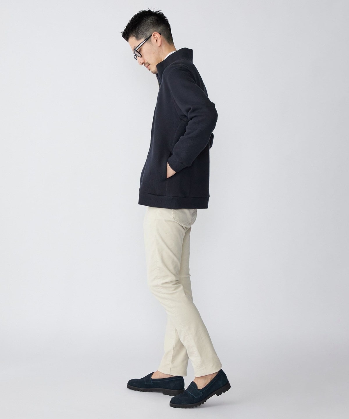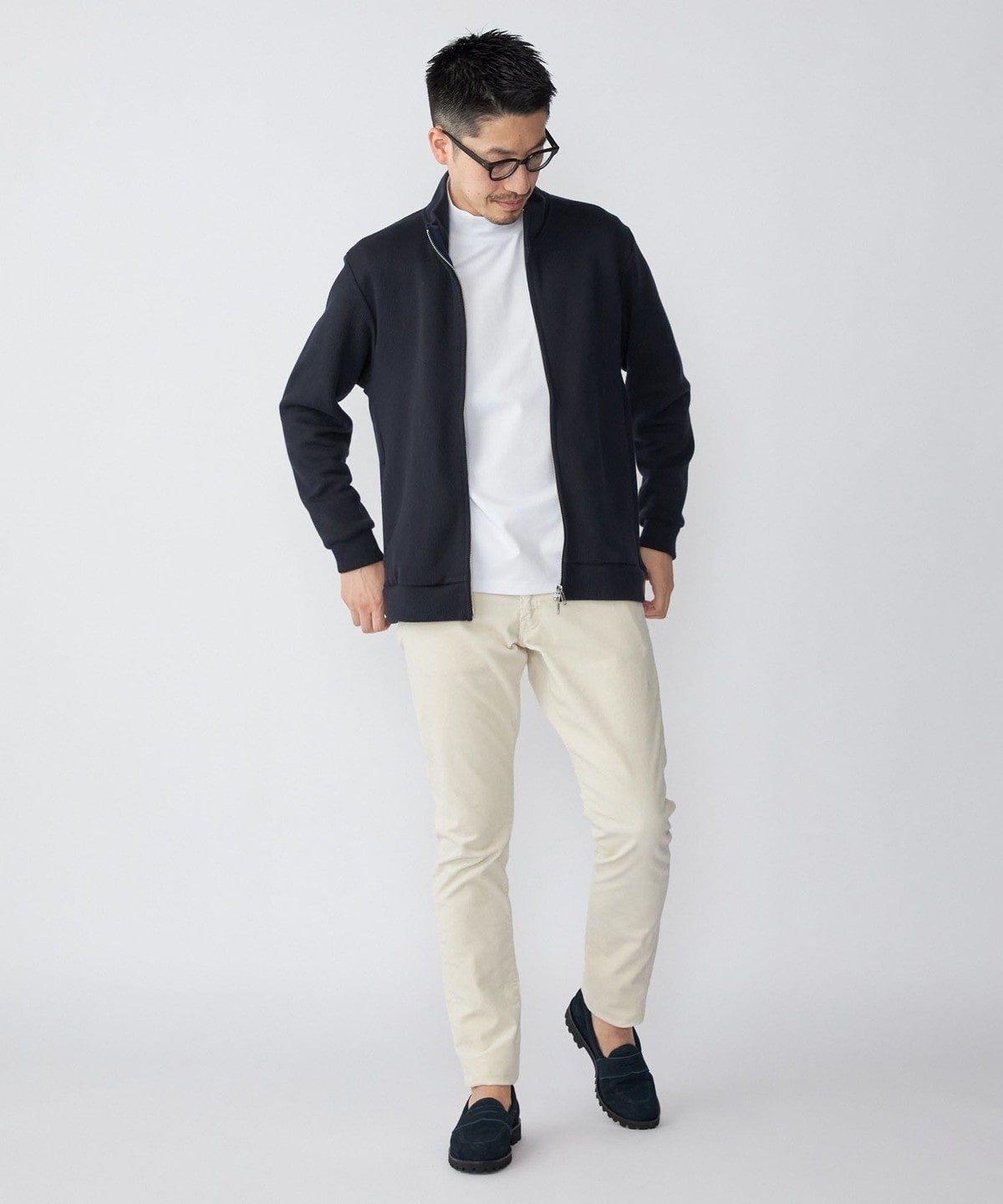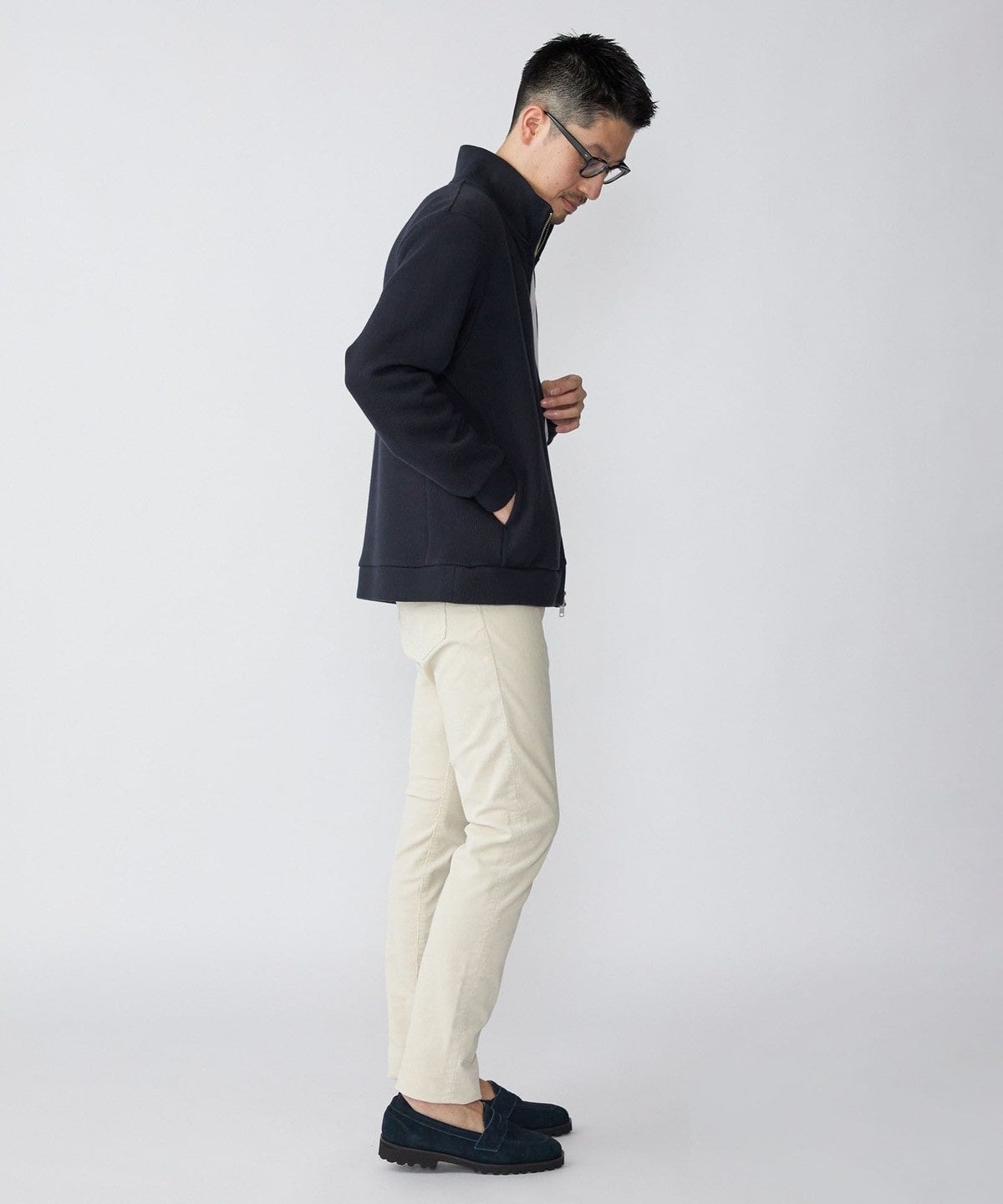着回ししやすい程よい肉感、使い勝手の良いキレイ目なデザインはカットソーと合わせるのはもちろん、ビジネスでの羽織りとしても有能な一枚。