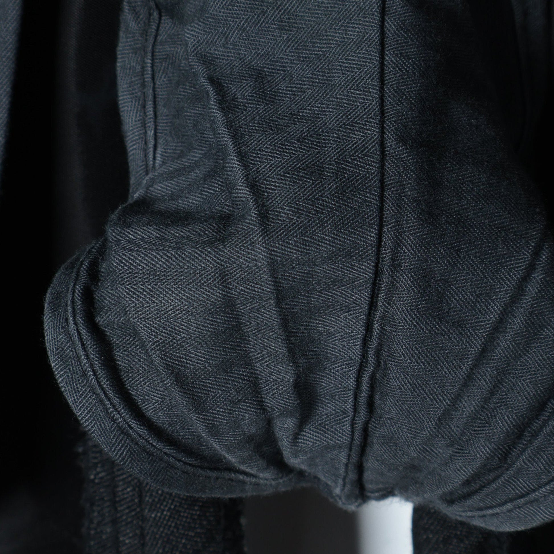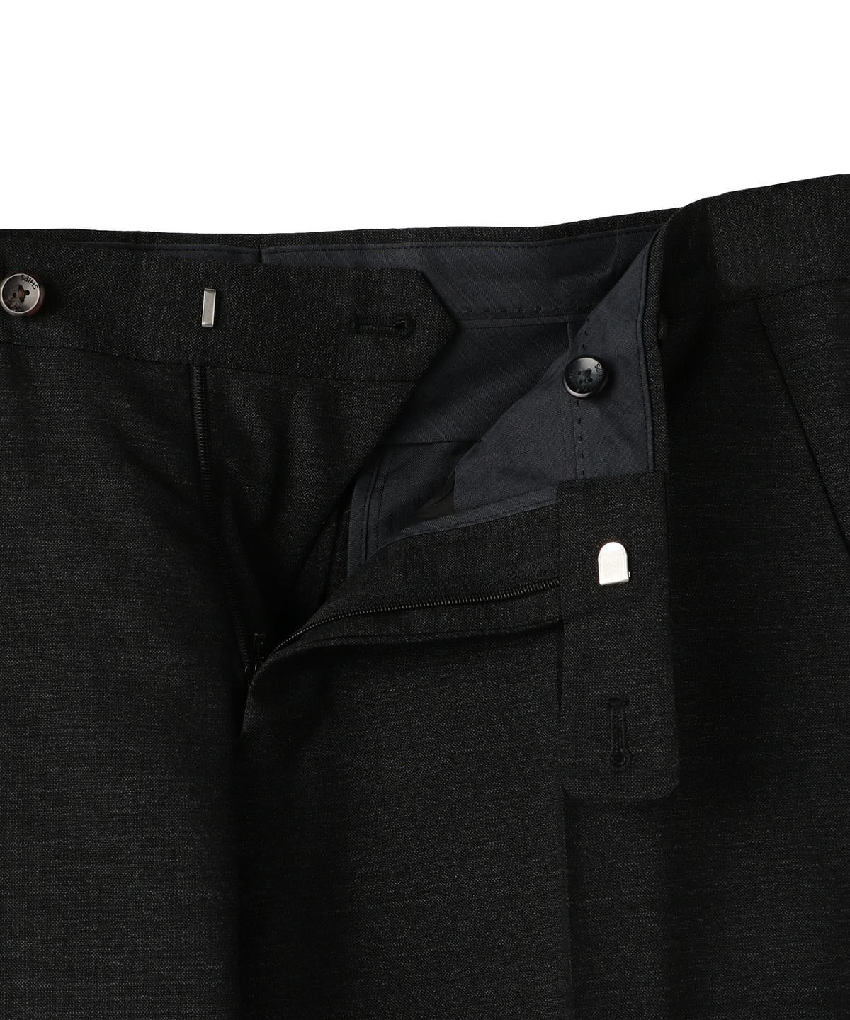 またウエストへの負荷を逃がすV字のスリット、ベルトのバックルを固定するピンループ、滑りのいいキュプラの裏地、ポケットの強度と美しさを向上する玉縁の仕様など、細かなディテールにもこだわり仕上げました。
