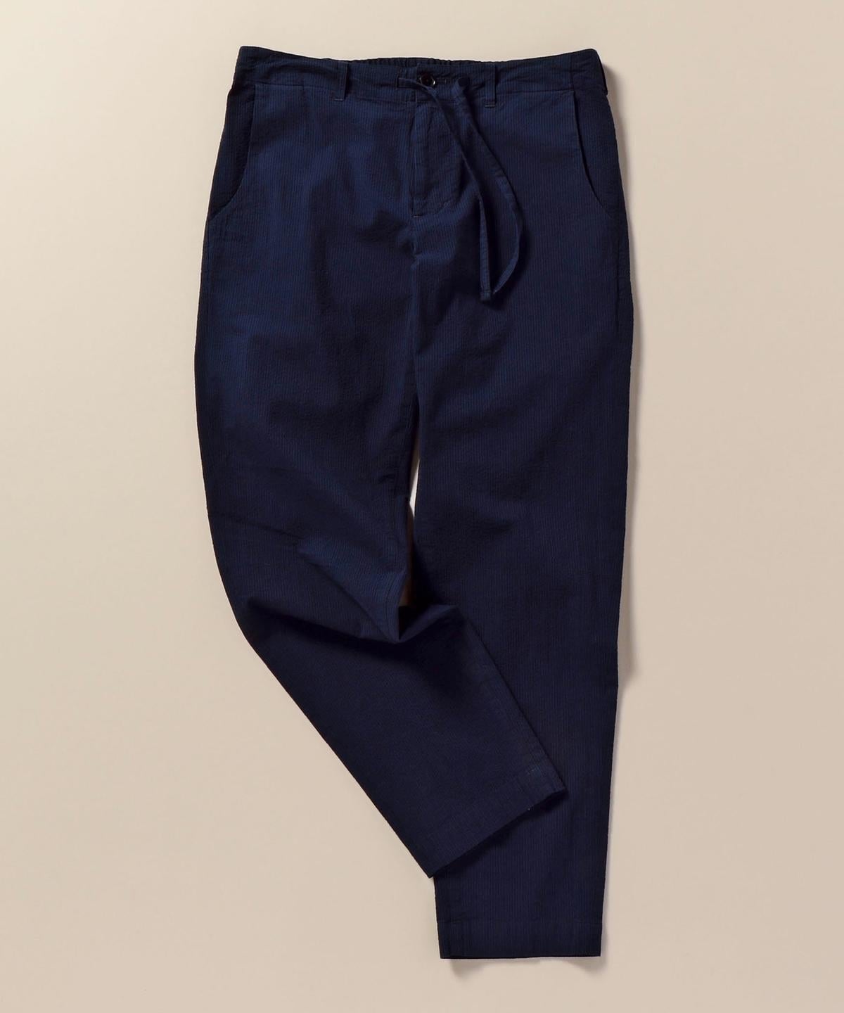 清涼感のある生地に仕上げたシアサッカーのセットアップ対応のイージーパンツ