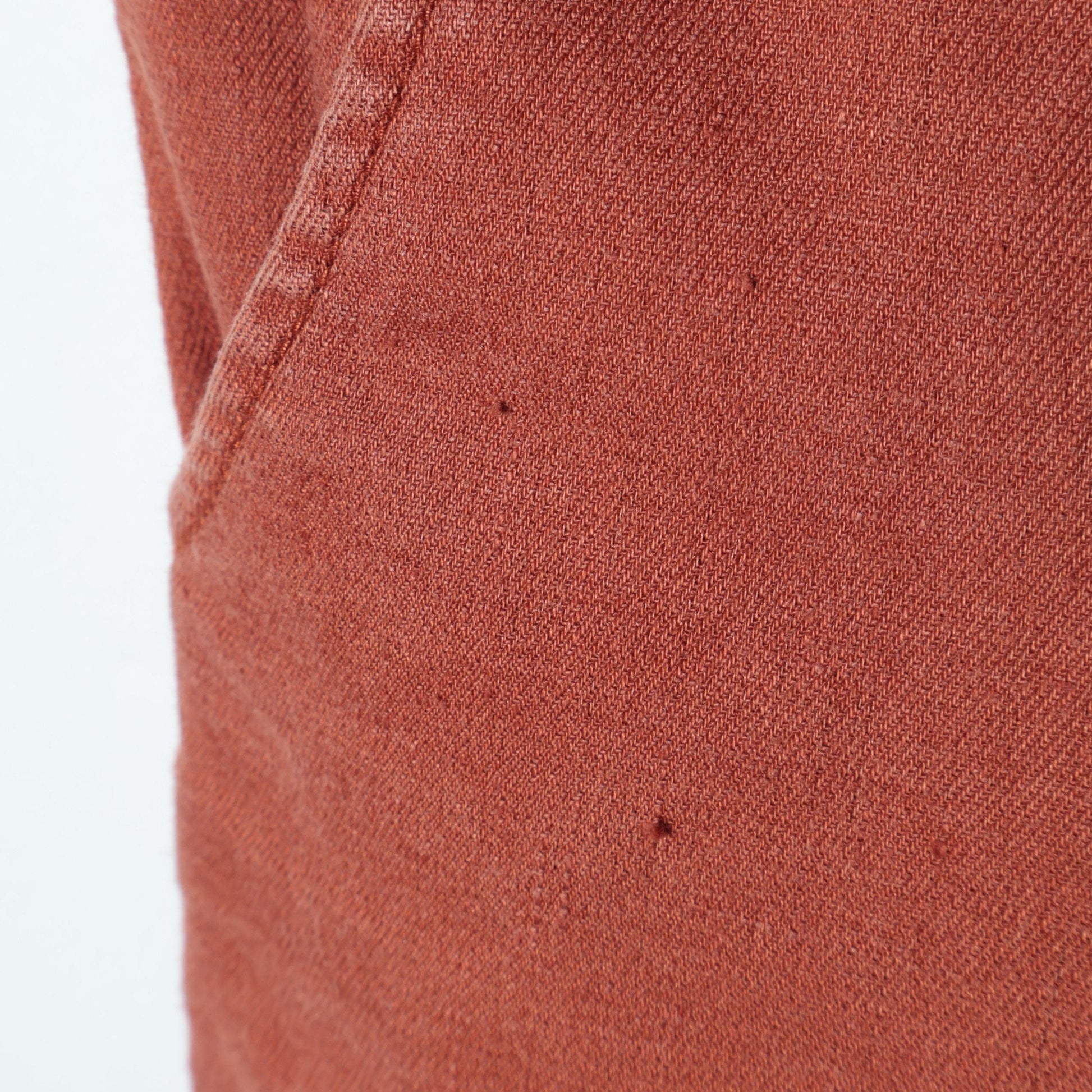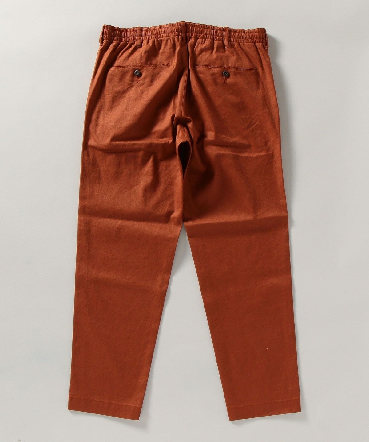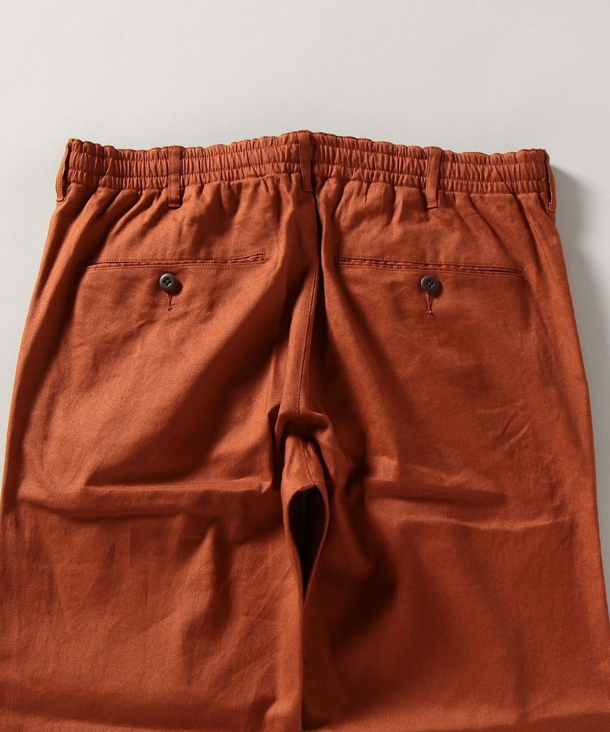 滋賀県の藤居織物に依頼し、タテ糸に60L/1のサフィランリネン、ヨコ糸にサフィランリネンとソロテックスをブレンドしたサイロスパン60L(75D)を使用したストレッチギャバジン素材です。弾力性に優れ、型崩れしにくい良質な生地感に仕上がり、麻の素材感を損なうことなく機能性を高めた他にはない生地となっております。またクリーズケア(形態安定加工)を施し、より高い形態安定性を確保。