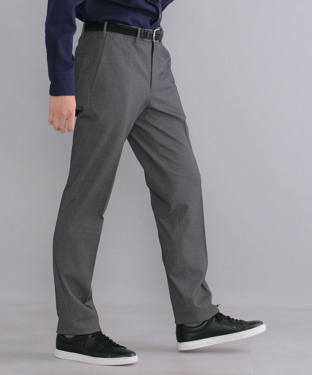 内側両サイドに外側からは見えないゴムを入れておりウエスト周りの圧迫感が少なくベルトレスでも着用可能です。ウォッシャブルでクリースが取れにくく、日常のケアも手間が掛かりません。裏地もメッシュを採用しきちんとした見た目ながら機能も持ち合わせたトラベラースラックスです。