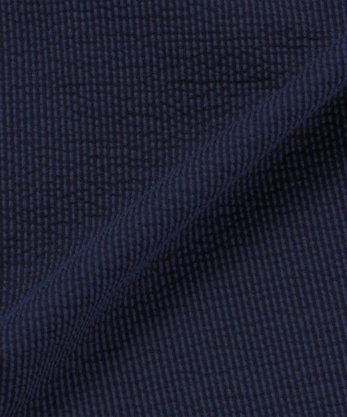 36番単糸のコットン・ポリエステル、後染め染分けトリコットサッカー素材を使用。
