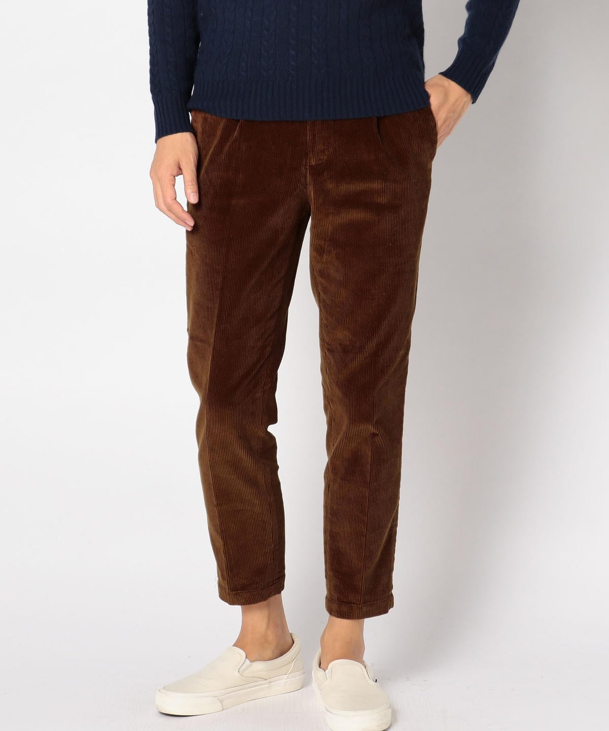それでいて上品な雰囲気を感じさせるのは、テーパードのシルエットと上記の素材を使用した上品なコーデュロイ素材のため。カジュアルなアイテムを落ち着いた素材・大人なシルエットにすることで、SHIPSならではのアイテムに仕上がっています。