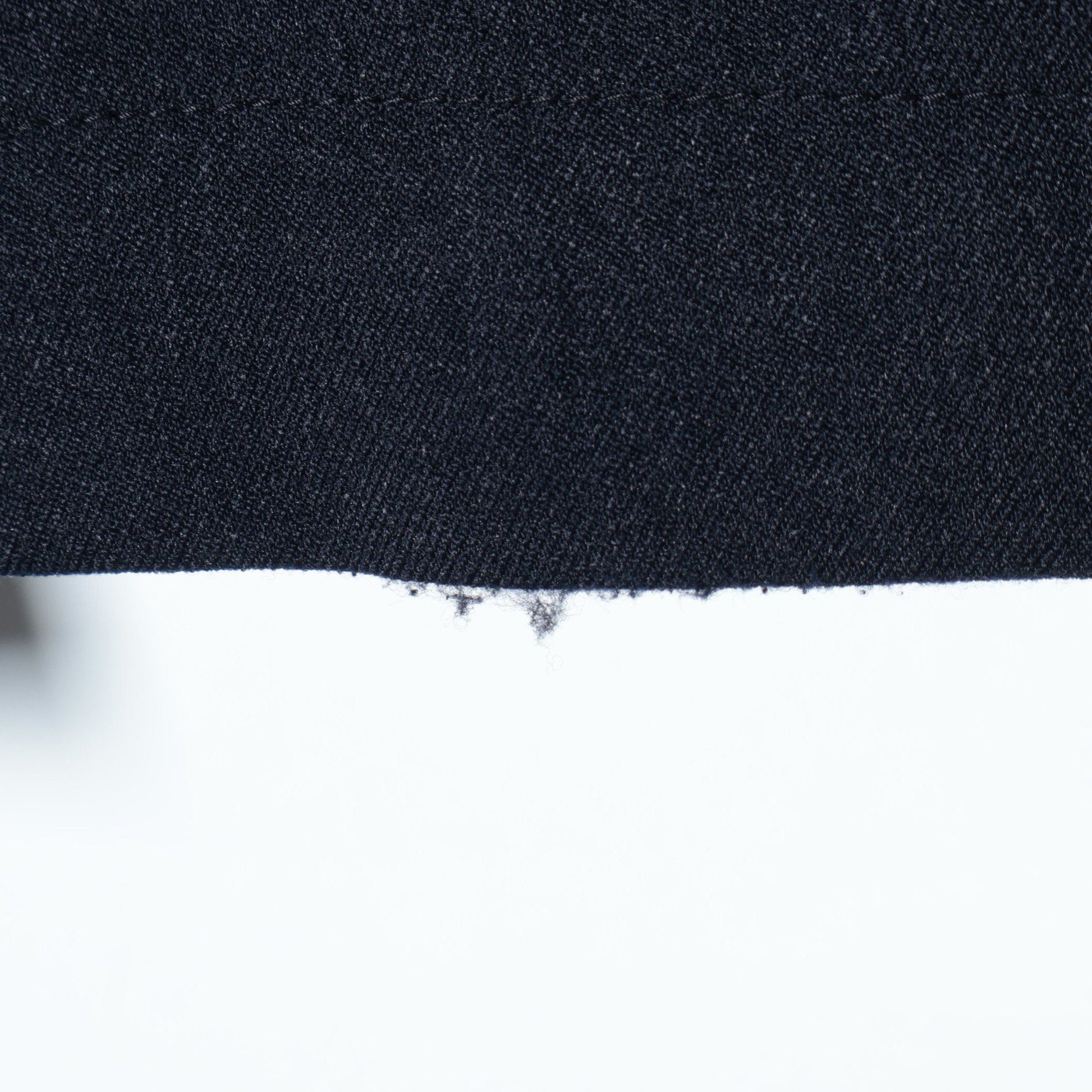 膨らみのある糸を使うことで、梳毛ウールのような風合いを表現しています。また、程よくハリのある生地は、シワになりにくく、洗濯機で洗っていただけるイージーケア性能も特徴。ストレッチ性に優れ、着心地も良く仕上げています。