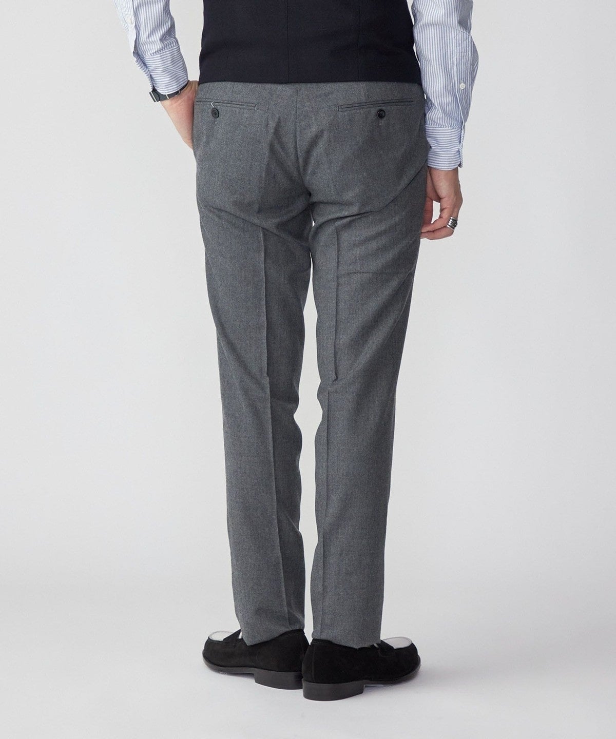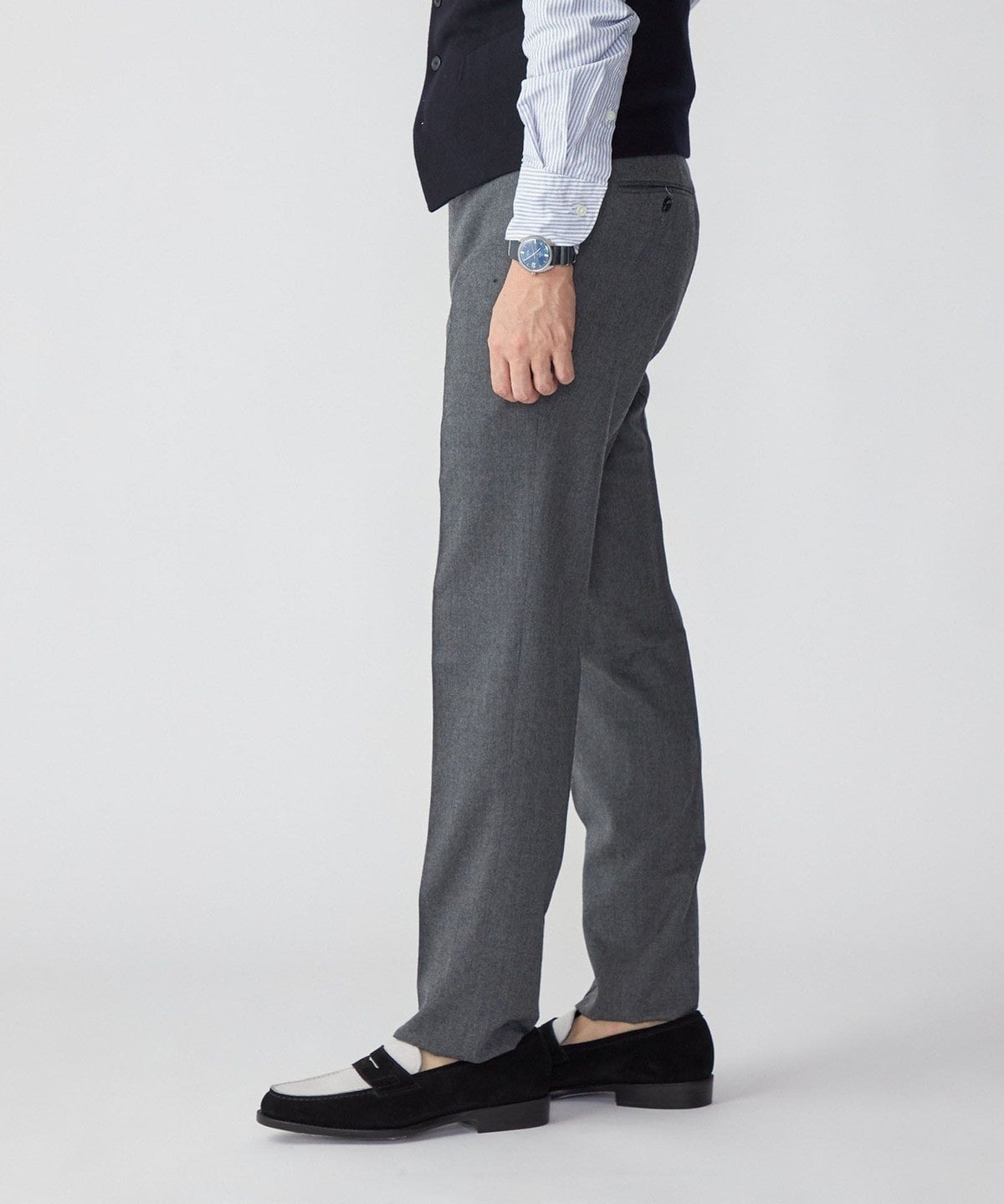 スッキリとした腰回りから裾にかけてテーパードした、飽きのこない定番のシルエットです。