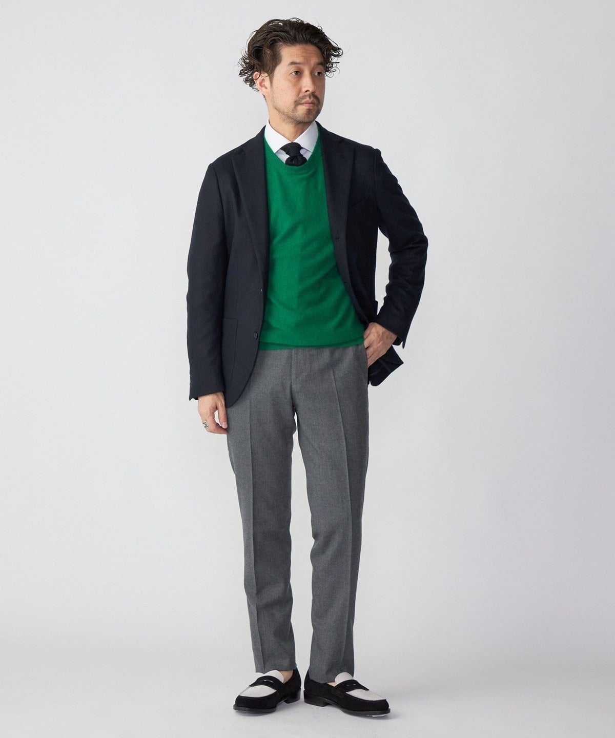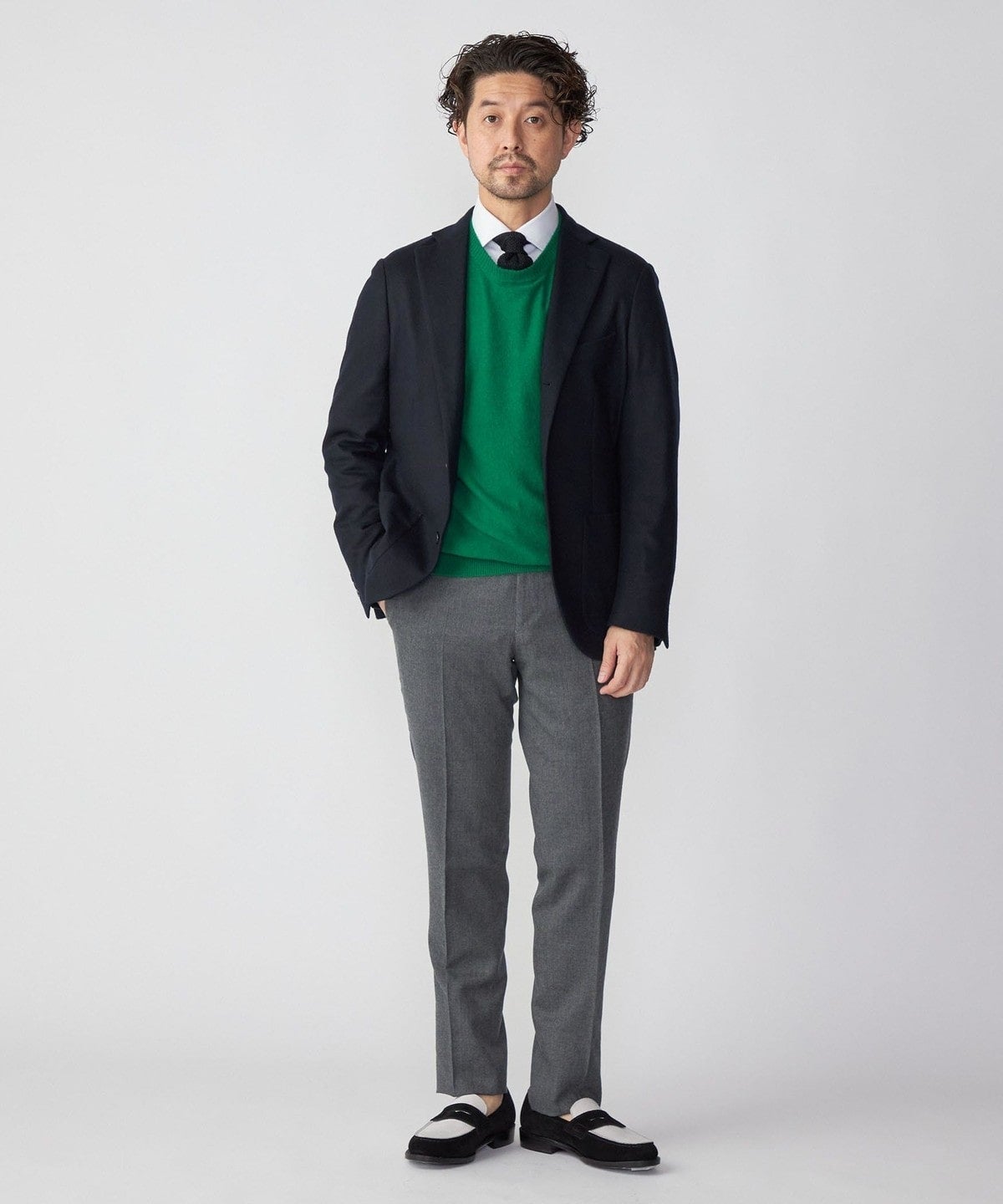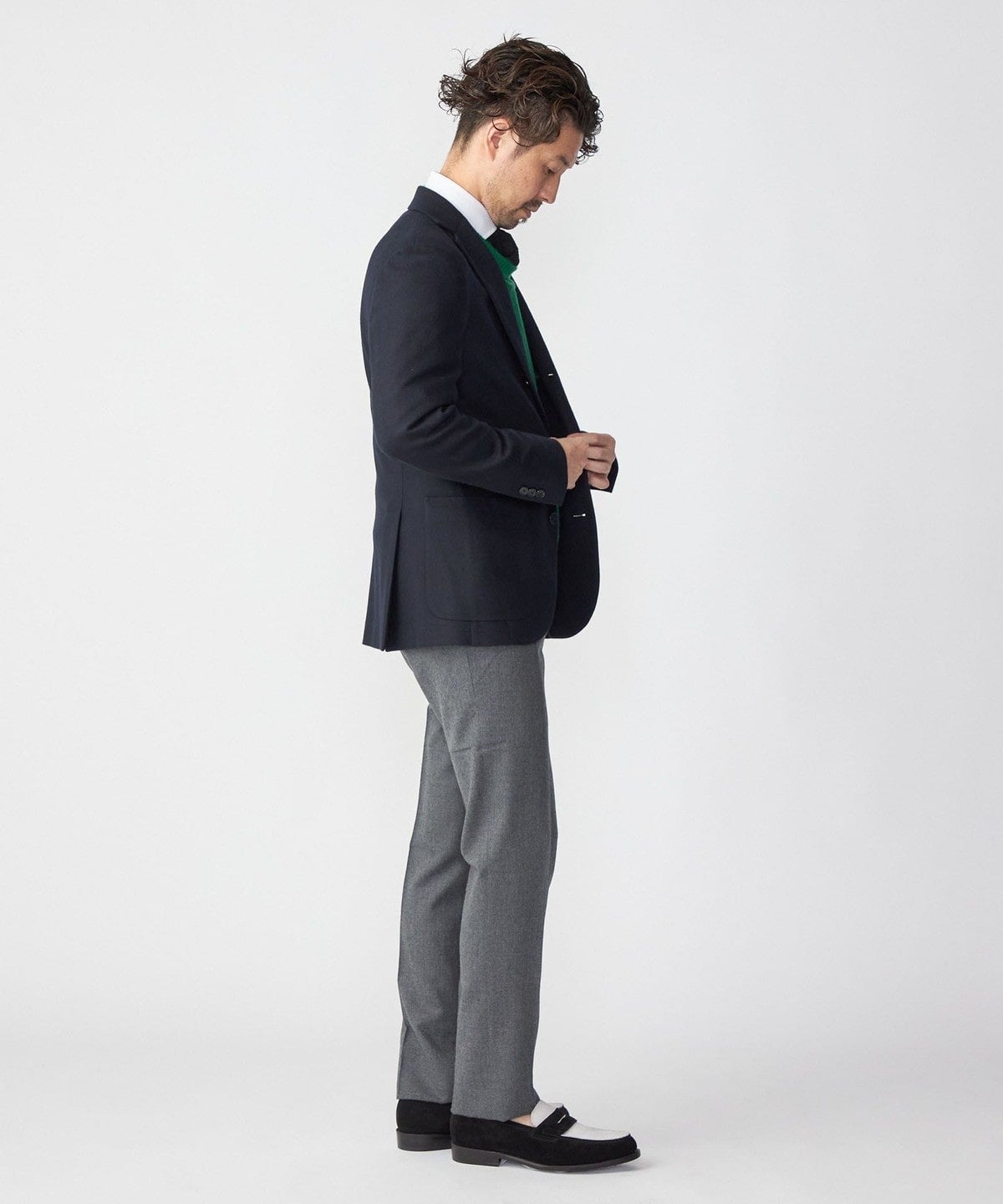 ウール100%で起毛感も強すぎない為ジャケットなど比較的合わせていただきやすい素材感です。