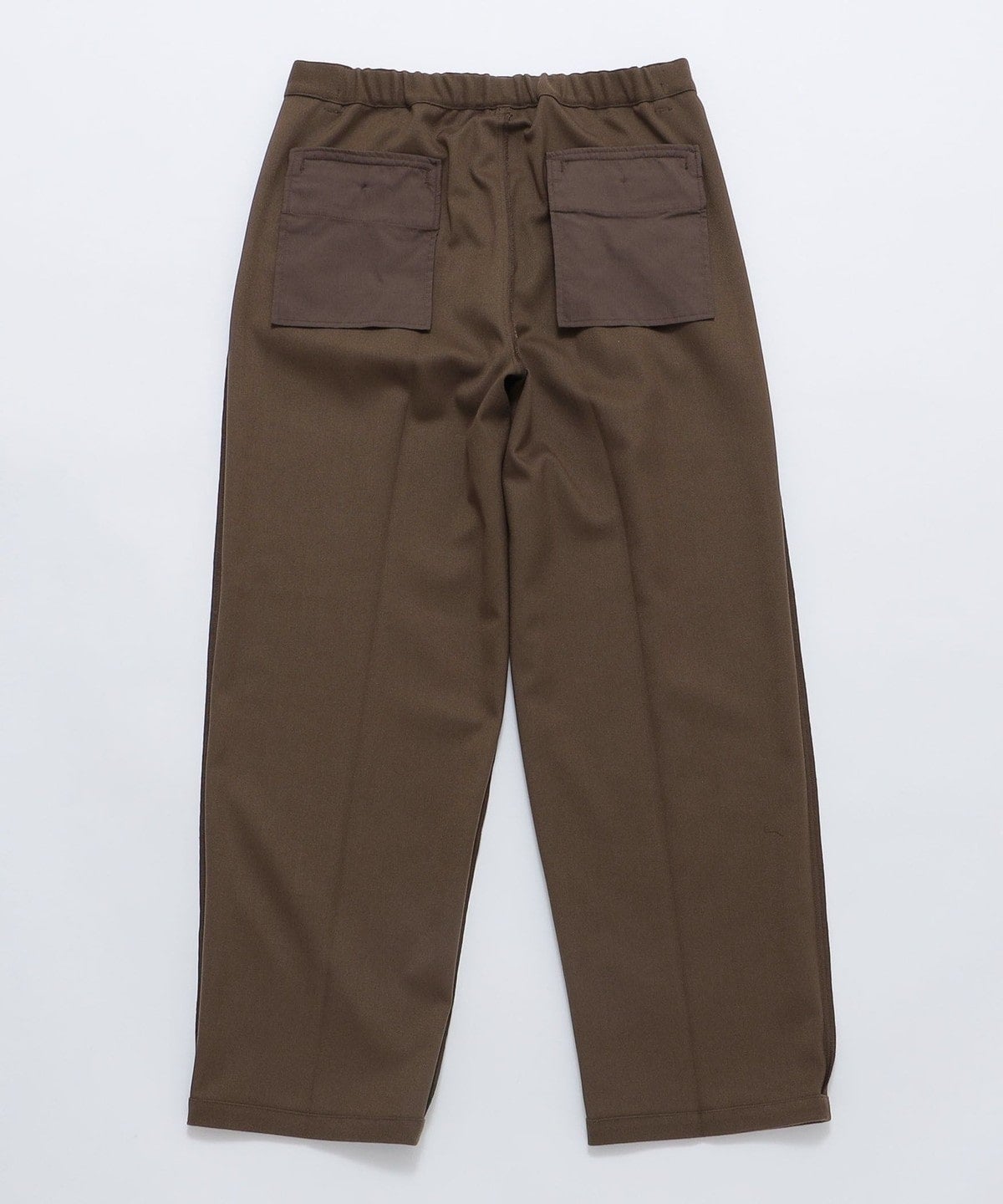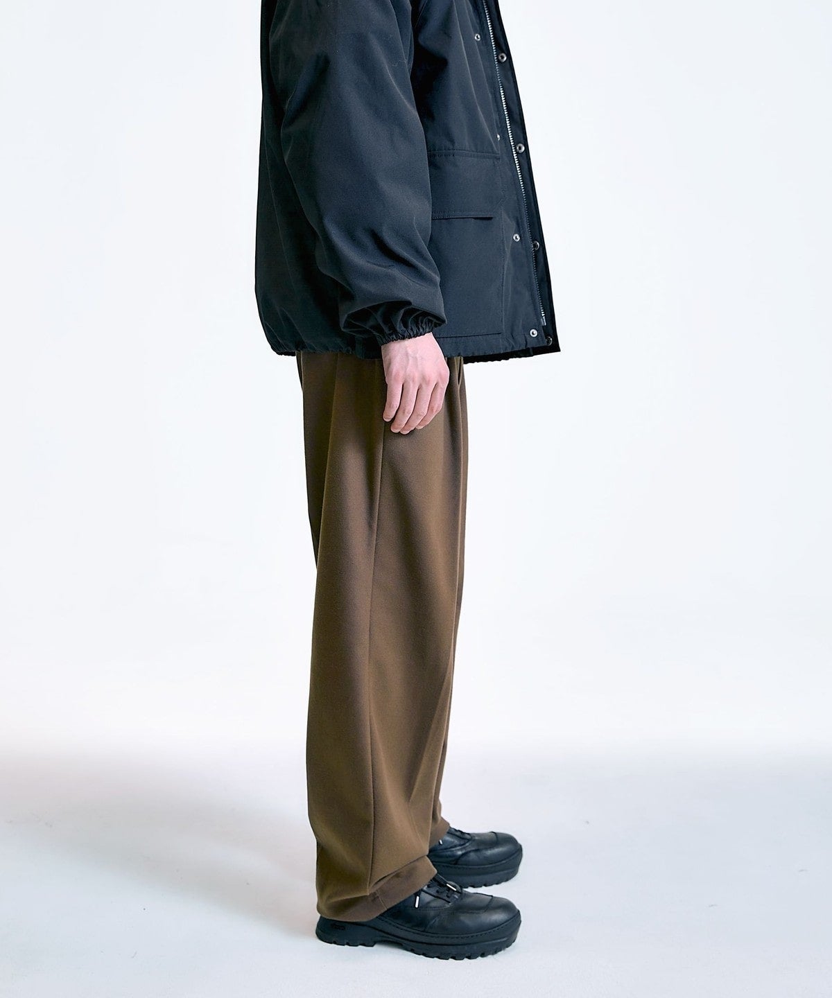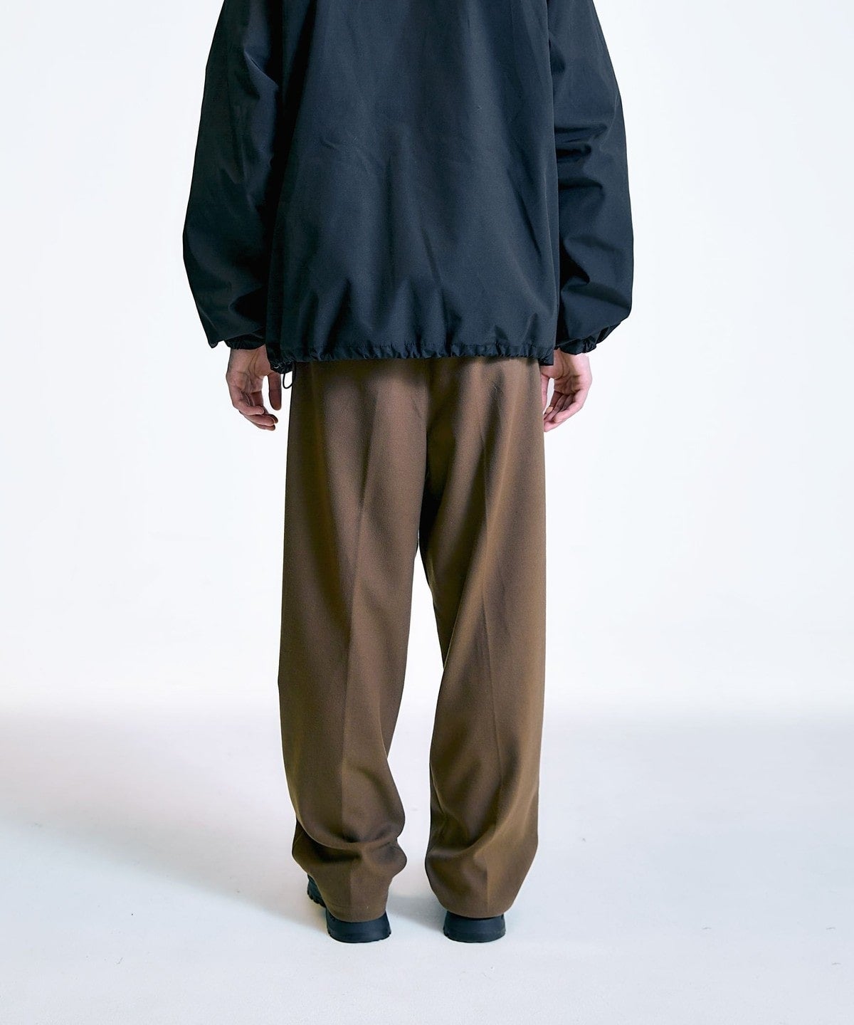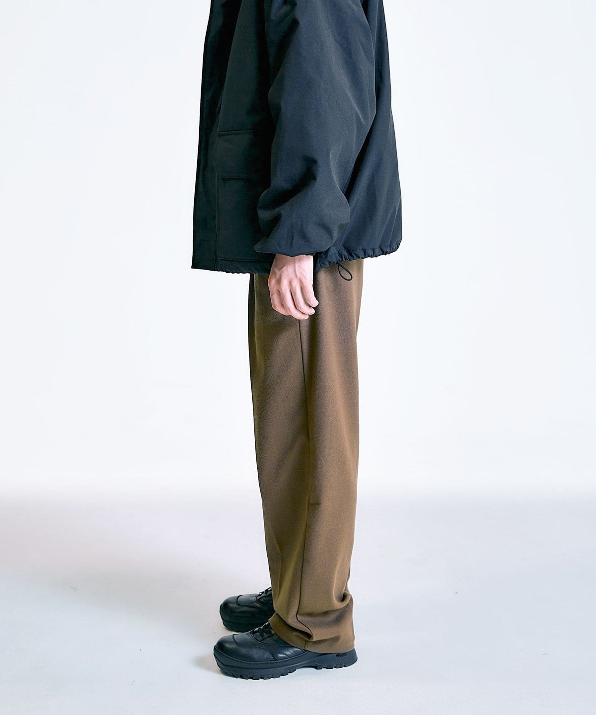 サイズ感はヒップ、ワタリを広く設定し、テーパードを利かせた野暮ったさを感じない上品なワイドシルエットに構築。センタークリースを入れることで、よりキレイめな印象に。