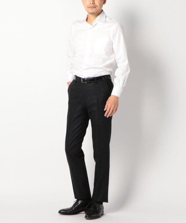 <SD: フラノ ノープリーツ メランジ ソリッド パンツ(チャコールグレー) 型番:113-16-0013>