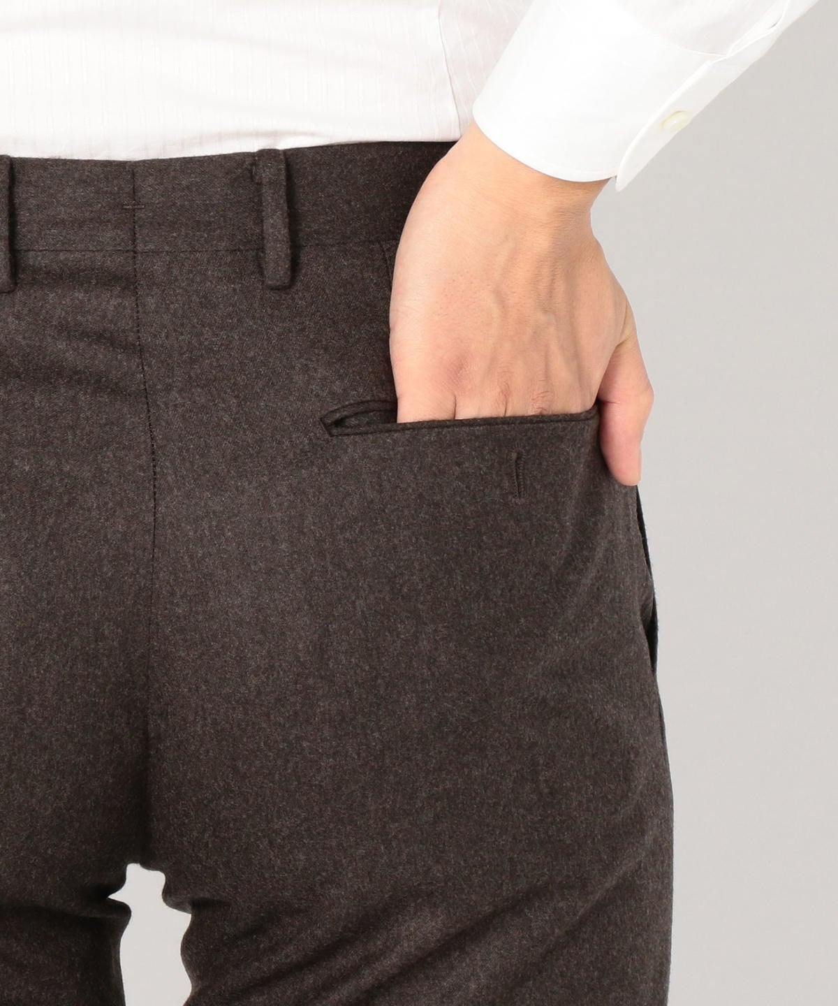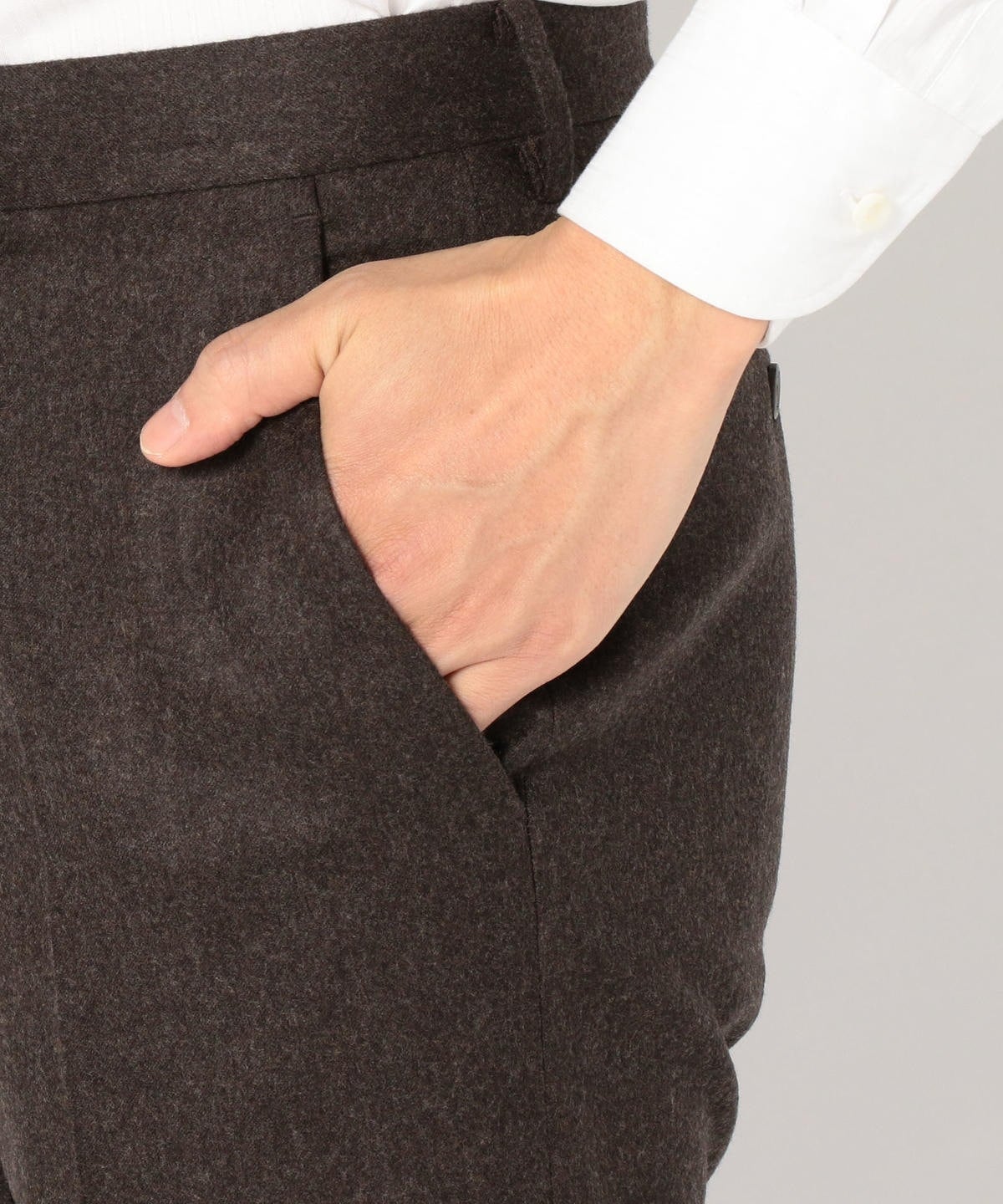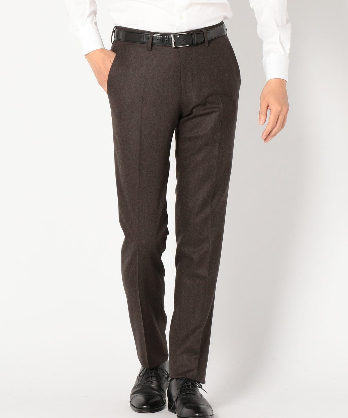 SD: フランネル生地 ノープリーツ スラックス(ブラウン)