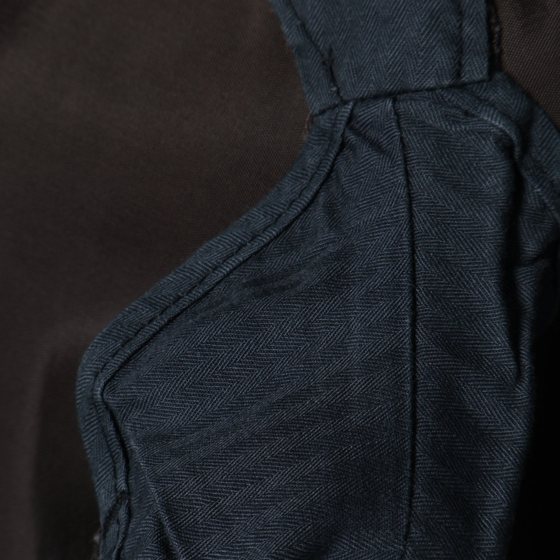 ウエストへの負荷を逃がすV字のスリット、ポケットの強度と美しさを向上する玉縁の仕様、滑り止めの付いたウエストの裏地など、ビジネスパンツを製作する工場に依頼することでドレッシーさを失わないドレカジ対応パンツに仕上がっています。
