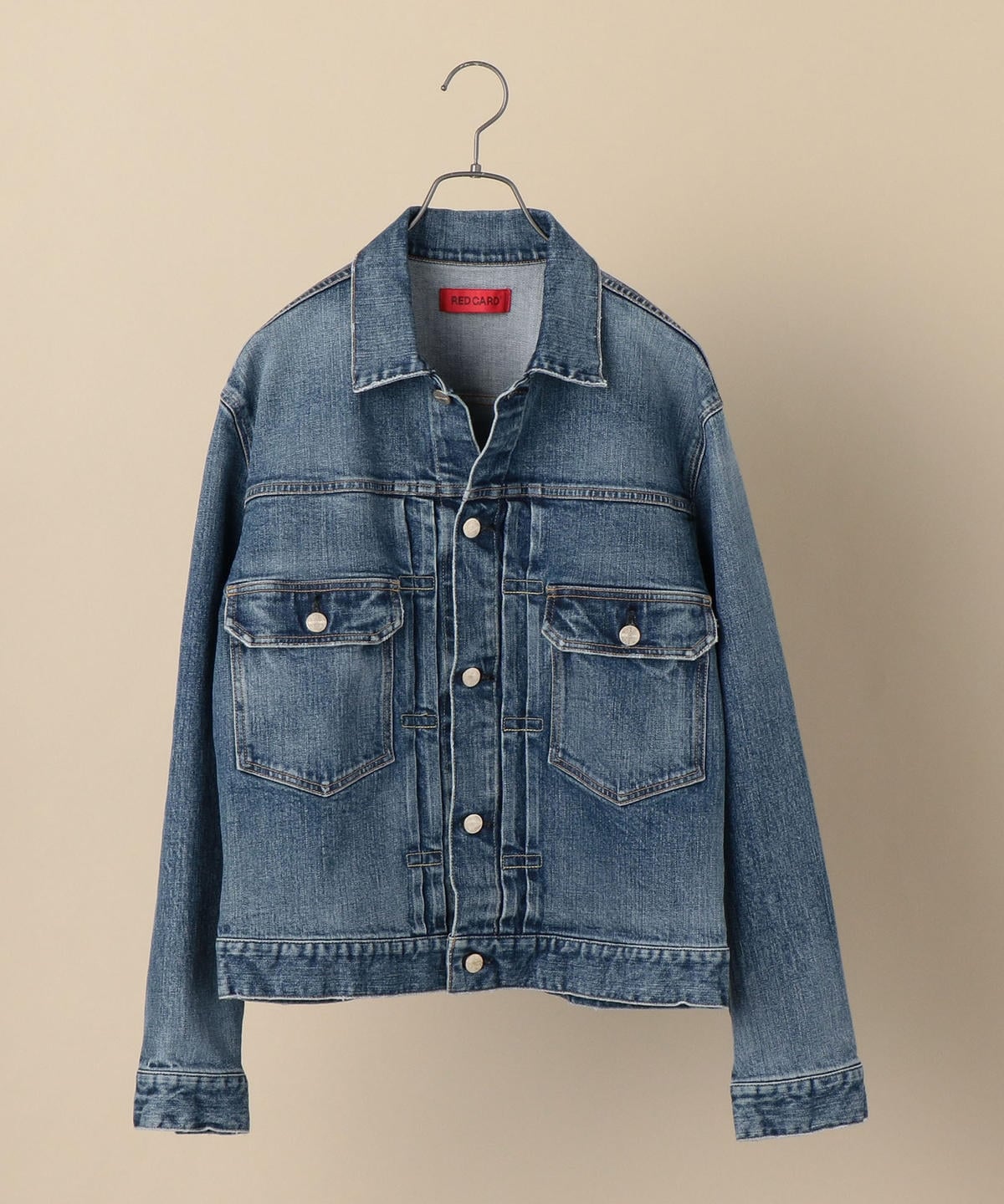 REDCARDの特徴/強みである「リアルヴィンテージ顔」はそのままに、過去の意匠を現代的にリデザインしたこだわりのディテール、更にストレッチを利かせたSHIPS別注ならではの雰囲気溢れるデニムジャケットに仕上げています。