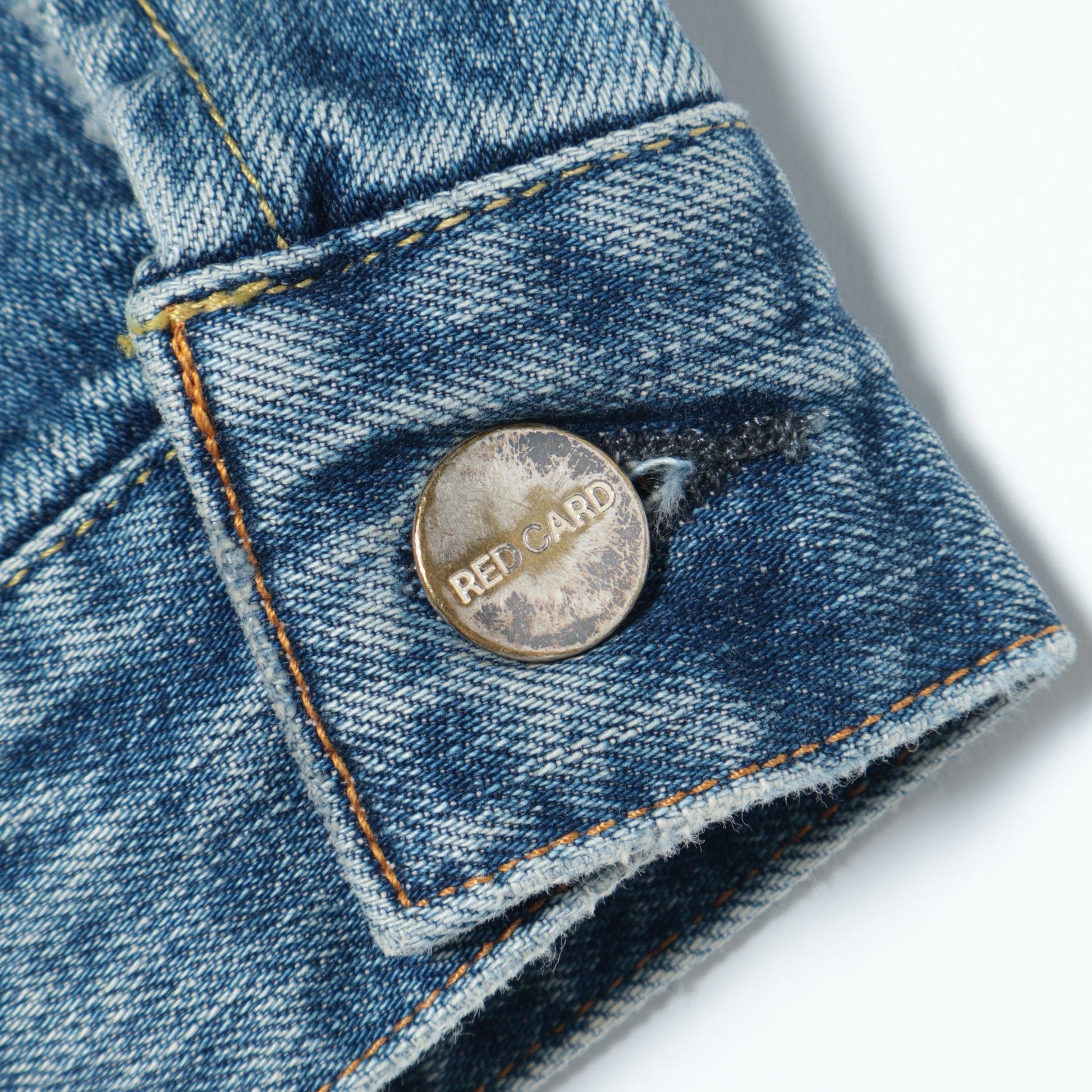 今回、自然な経年変化の雰囲気を醸し出したウォッシュカラーと、色落ち等育てていくのが楽しみなソリッドネイビーをご用意。前開き部分にプリーツを入れたデザインや、"RED CARD"の刻印入りボタン、胸にボタン留めラウンドフラップポケット2つ、カフスボタン留め、後身裾にボタン留めのタブなど、細部のディテールにこだわりを感じていただける仕様となっております。