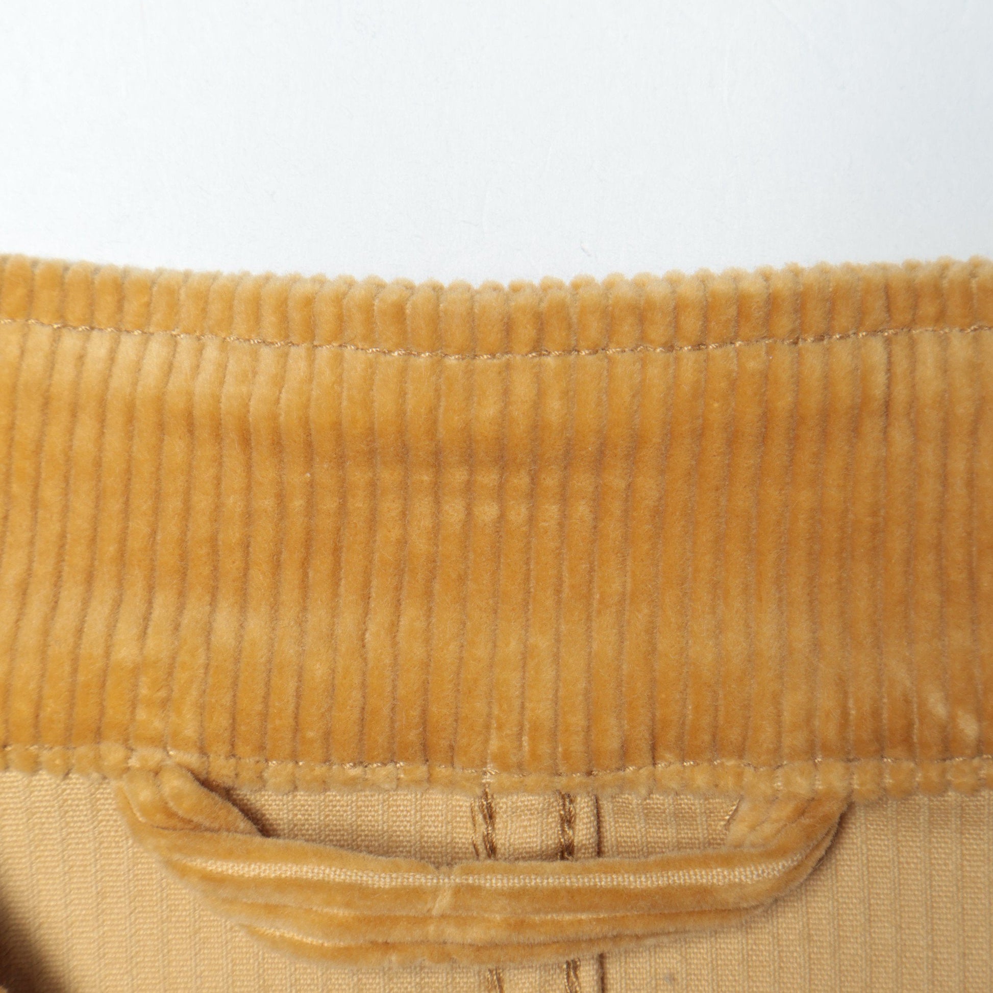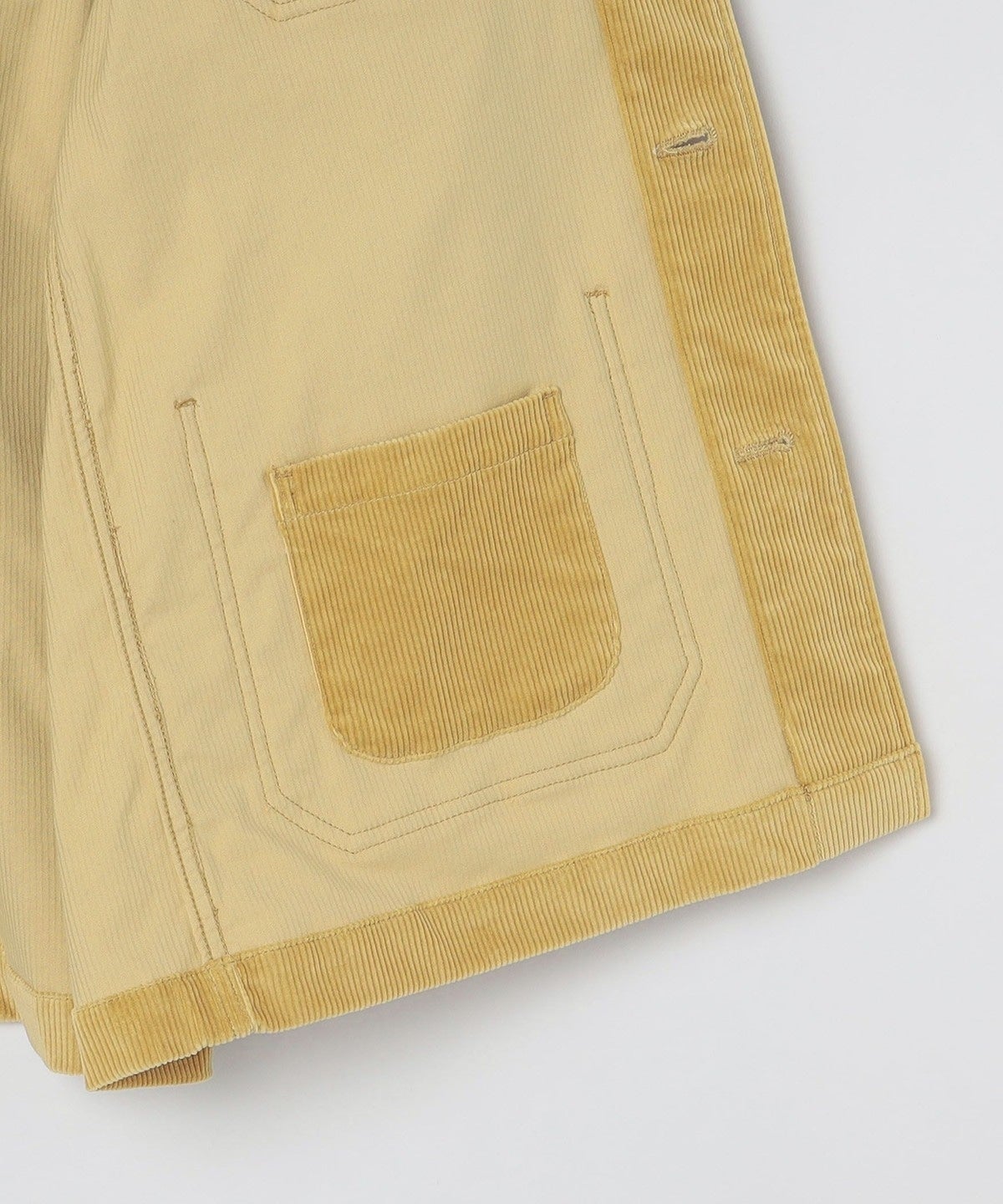 30/1のオーガニックコットンを使用したストレッチコーデュロイを使用し、仕上げ加工で弱タンブラーをかけることにより、綿の風合いがふくらみ、きれいな光沢が際立った素材感になっております。