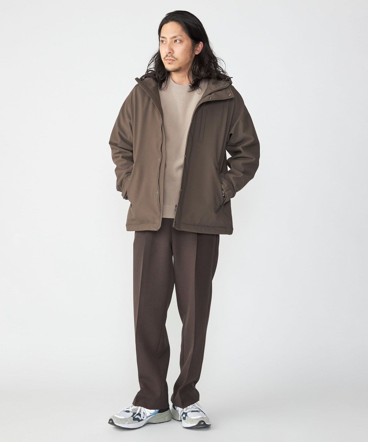 素材 表側 ナイロン 74% ポリウレタン 26% 裏側 ポリエステル 100% フード裏 ポリエステル 100%