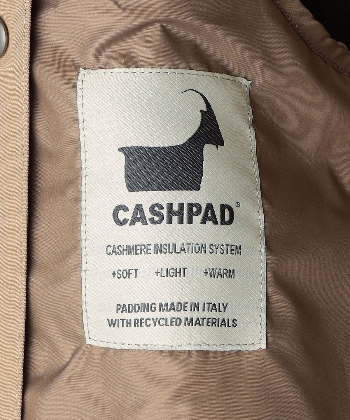 ・着脱可能なライナーの中綿には、サステナブルなリサイクル ウール カシミヤ中綿を使用した「CASHPAD」を使用しています。